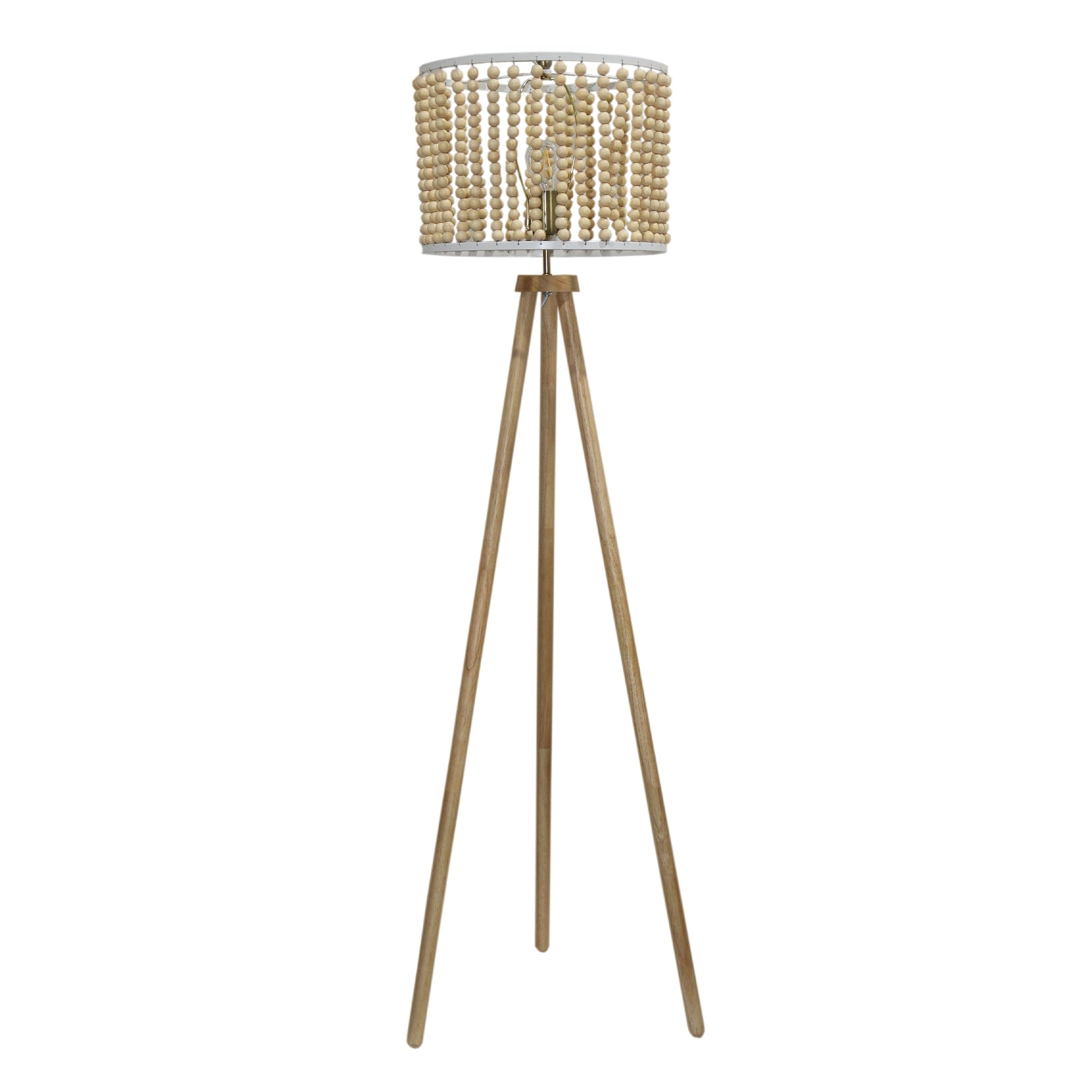 Illuminate your home with the charming Brillo Three Legged Floor Lamp Natural featuring a unique beaded shade. This lamp is crafted with a sturdy natural wood tripod base that blends seamlessly with the rustic and bohemian design of the beaded shade. Its open design allows light to filter through, creating a warm and inviting ambiance. Perfect for living rooms, bedrooms, or reading nooks, this floor lamp is a stylish and functional addition to any decor.