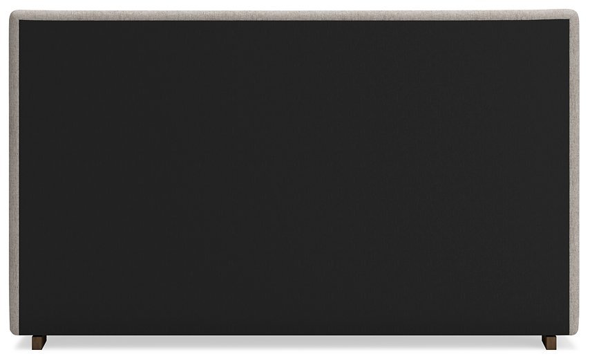 This queen upholstered bed sits comfortably at the intersection of modern lodge and farmhouse aesthetics. Your warm and welcoming disposition is reflected in its subtly tapered headboard and all-over upholstery. Even with its poise, the bed remains practical. Loose pillows on the headboard keep comfort a priority as you lay back to read or watch TV, defining your bedroom with reliable function and style.| Full Dimension | 68.75W x 98.25D x 50H |