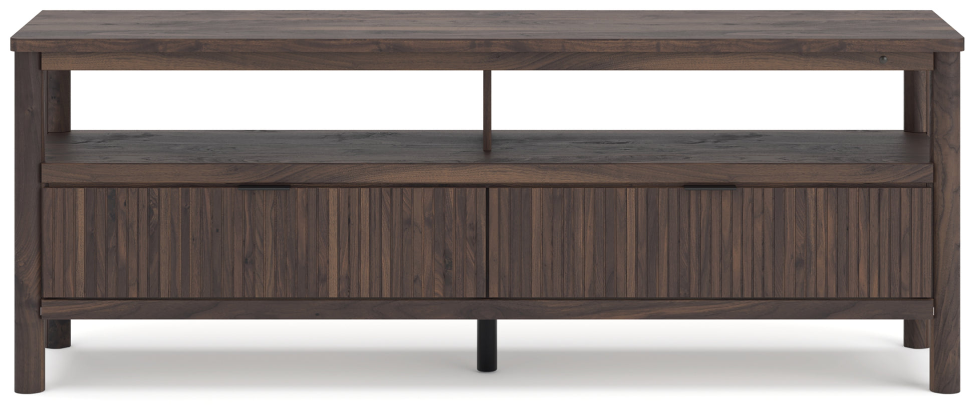 Crafted with both form and function in mind, this TV stand brings a dash of retro-cool character to your modern boho aesthetic. A reeded design on its drawers adds an on-trend touch to storing entertainment essentials. Warmly welcoming with a rich brown finish, the TV stand pairs well with muted hues, earth tones and other neutrals alike. And for added ambiance, lighting under the top brings a cool vibe to your favorite shows or video gaming. What a refined take on easygoing style.