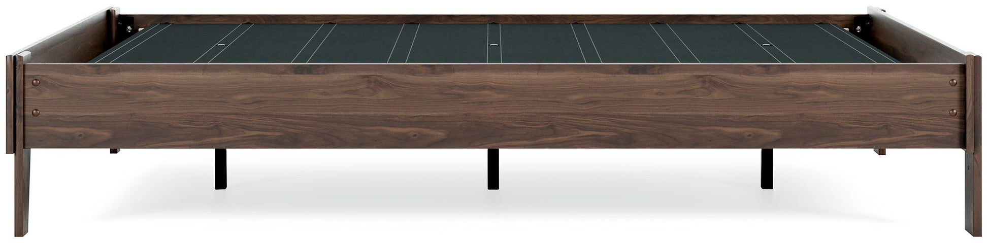 At the intersection of classic cool and chic sophistication you’ll find this queen panel platform bed. The rich brown finish over replicated walnut wood grain offers an authentic touch that plays well any way you style it. Minimal yet elegant in its design, this bed keeps your home decor grounded while elevating your modern style. Best of all, our innovative bed-in-a-box shipping system delivers your new bed right to the door.| Full Dimension | 65W x 86.5D x 36H |