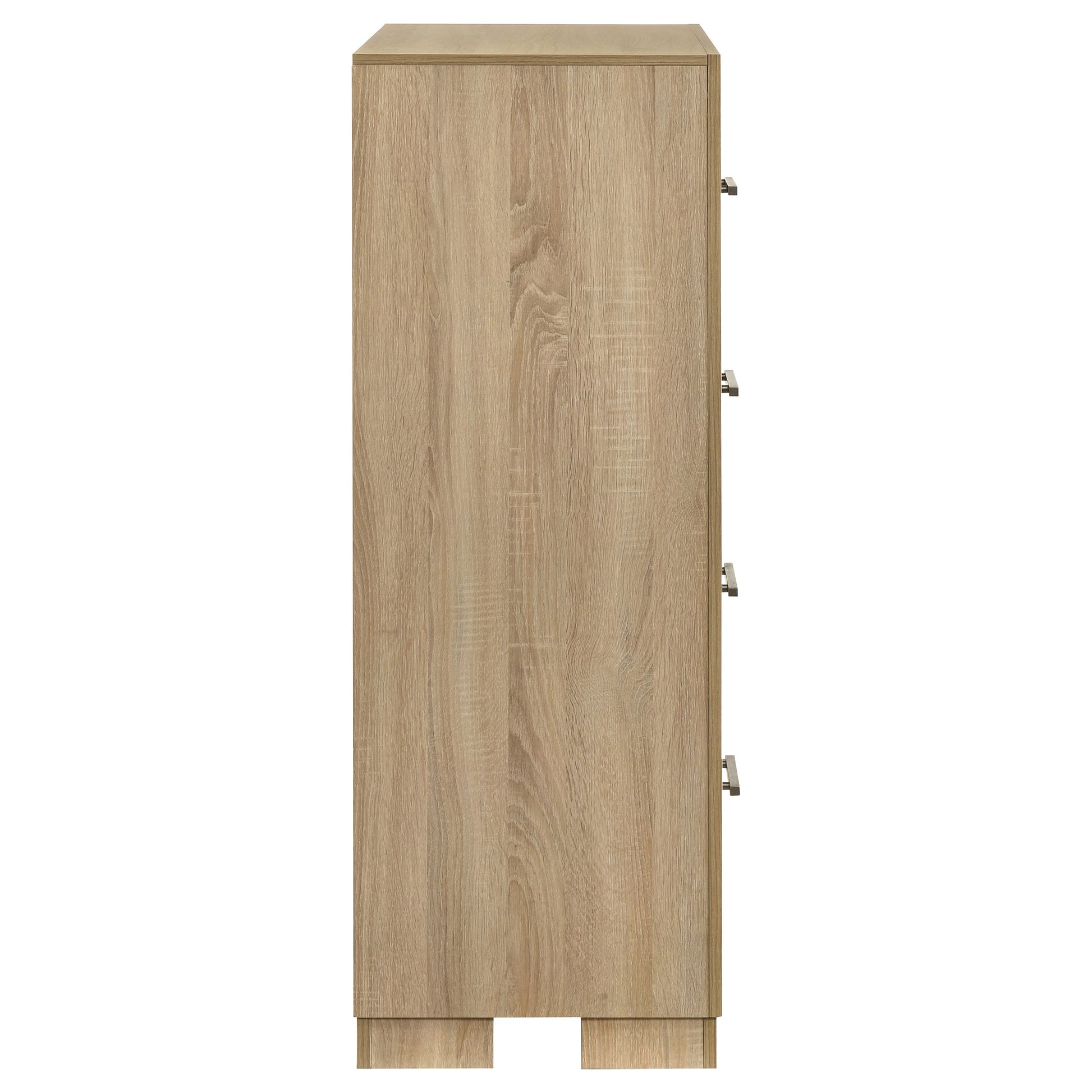 Four-drawer chest with clean lines and a light oak finish for soft contemporary styling