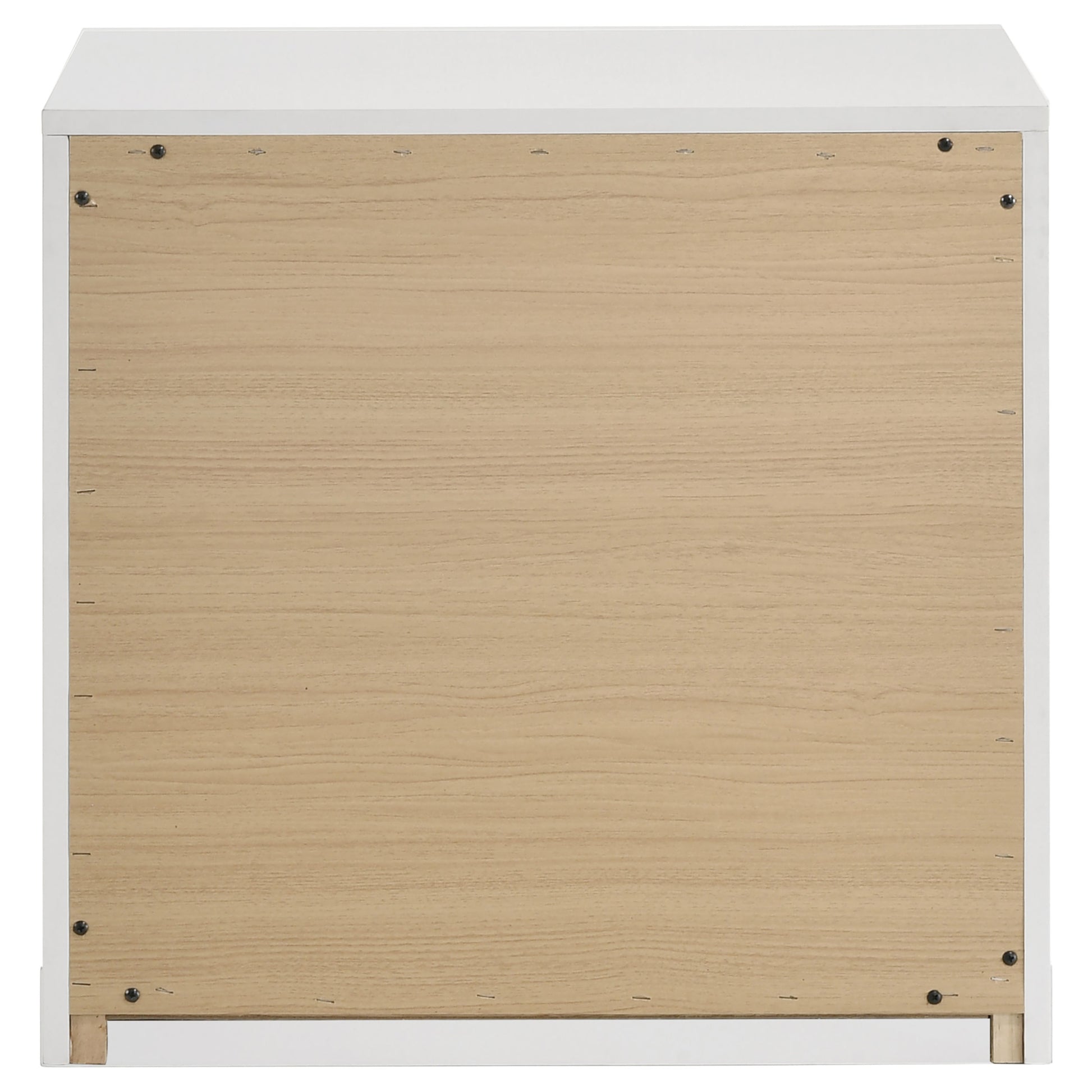 Bold in its simplicity, this two-drawer nightstand captures modern Italian influence with practical functionality. The white high gloss finish is made with eco-friendly PET thermoplastic, offering a surface that resists scratches, moisture, and heat. Vertically mounted polished gold pulls create a sculptural focal point, while two drawers provide easy-access storage beside the bed. Arrives fully assembled for instant style and utility.