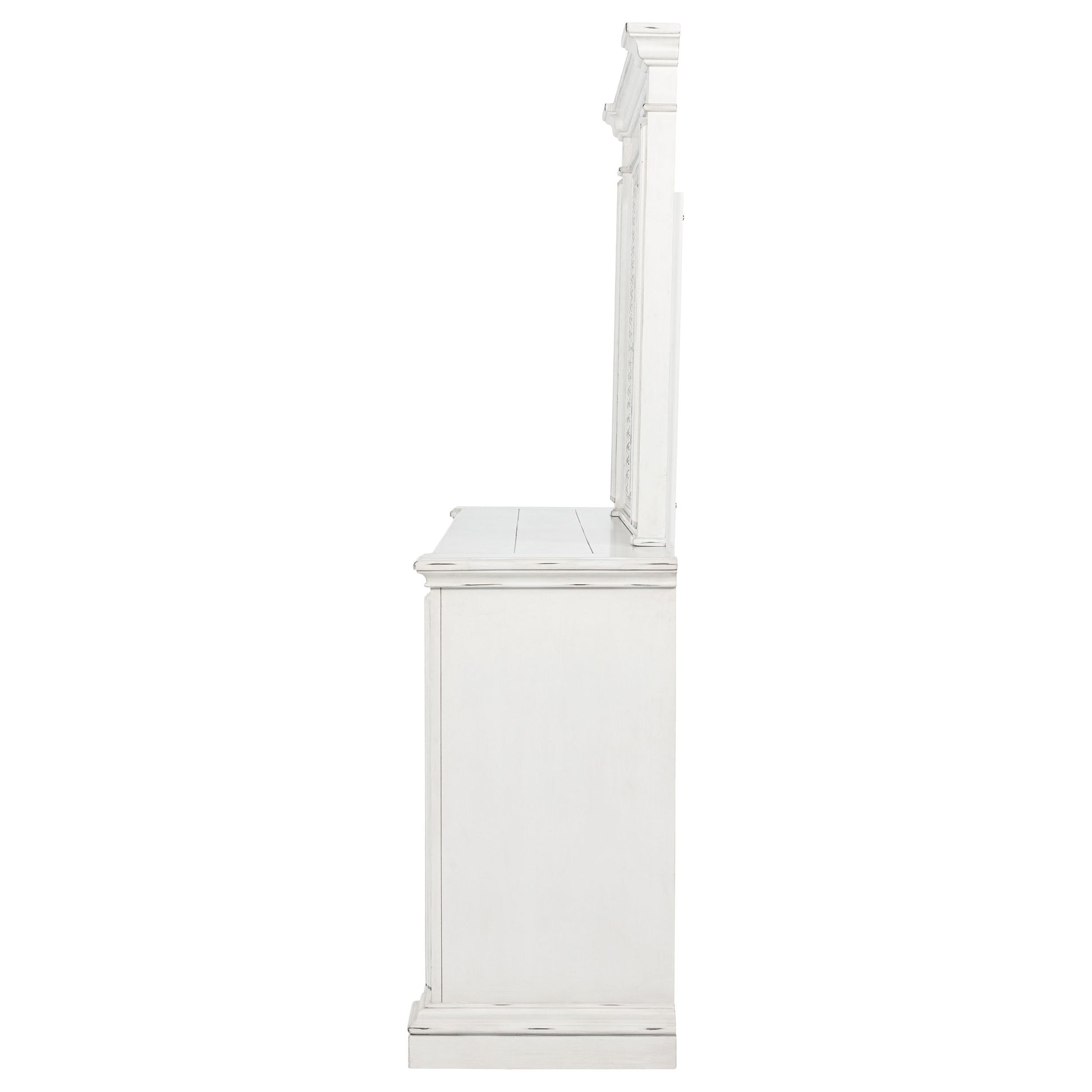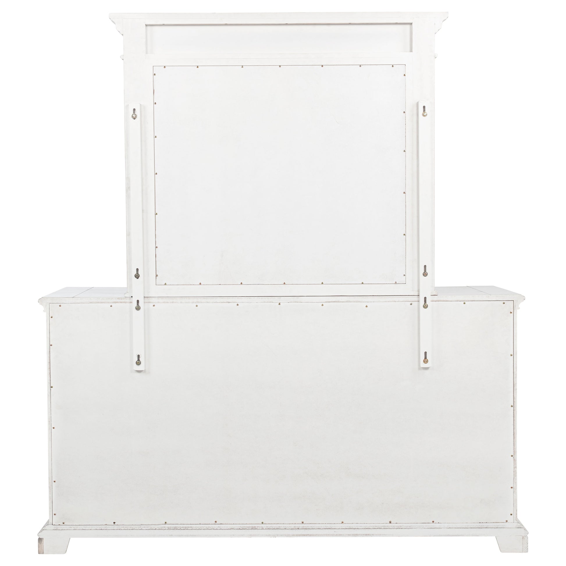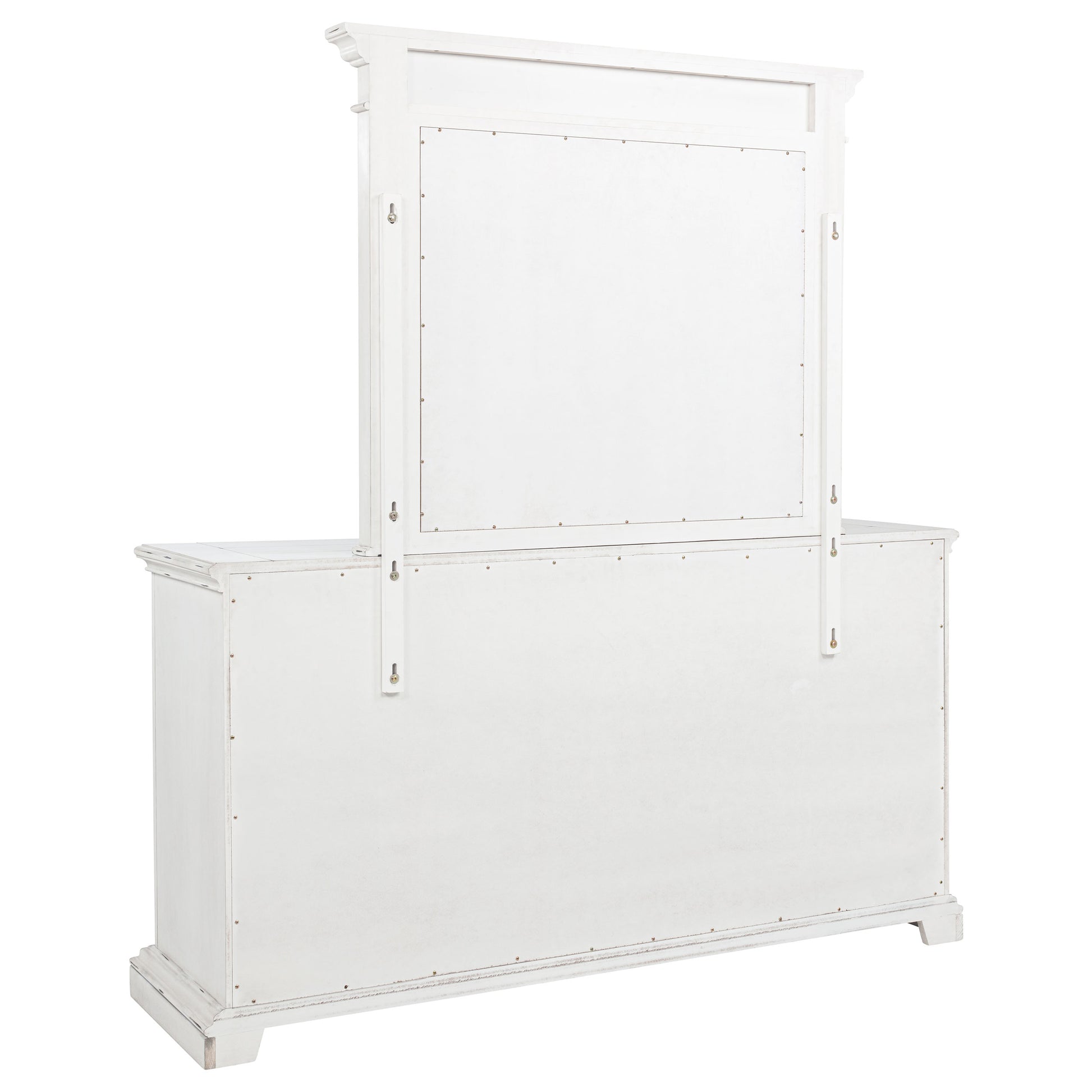 Rooted in traditional elegance, this dresser and mirror set brings vintage charm and refined detail to the bedroom. Framed with ornate carvings and softened by a distressed white finish, the six-drawer dresser offers ample storage with thoughtful touchesÑincluding a hidden jewelry tray in the bottom drawer. Antique bronze pulls and crown molding complete the look. Crafted from poplar and engineered wood, itÕs designed with both beauty and function in mind.