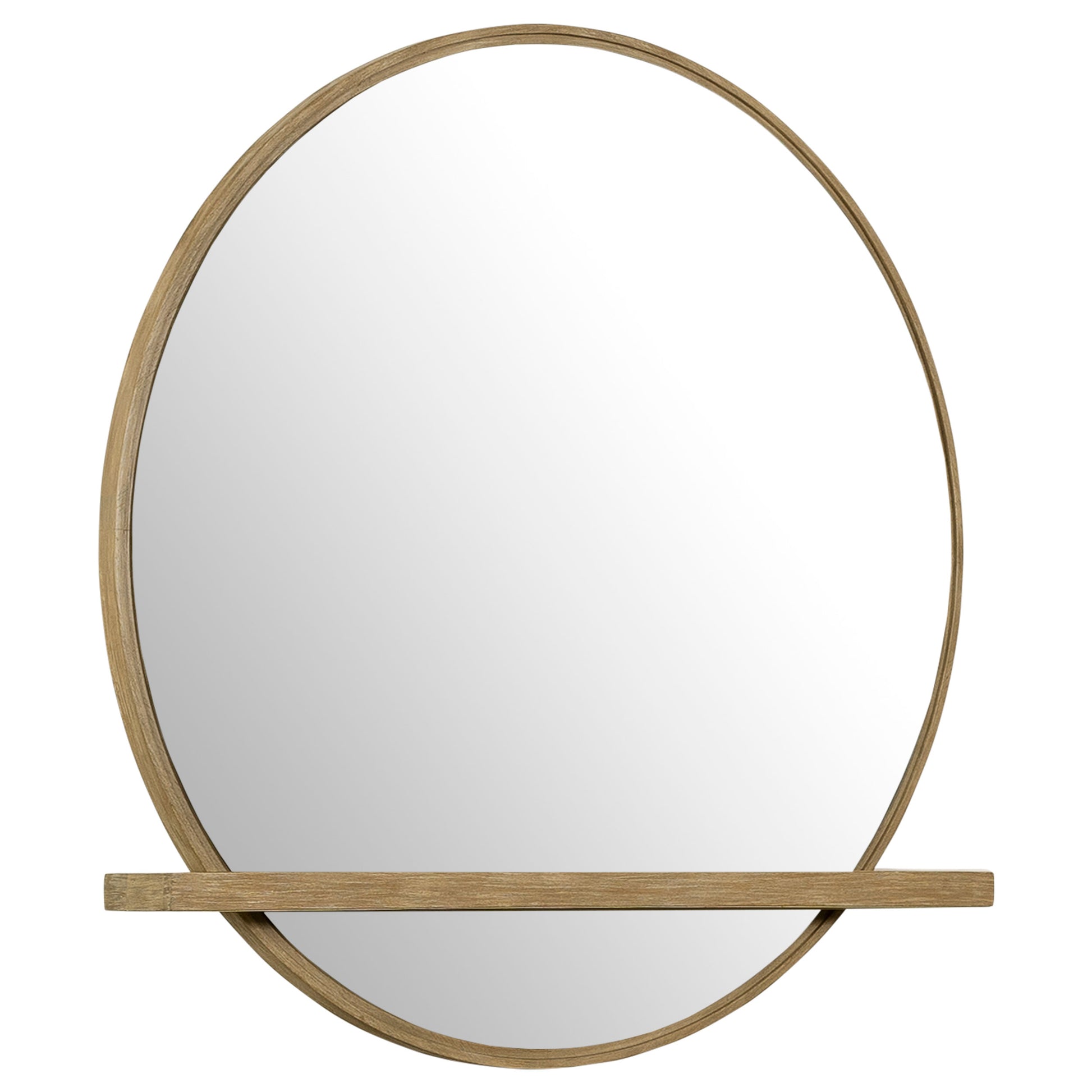 Make the most of your dresser space with this elegant, modern, dresser mirror, designed with a clever built-in tray below and a spacious round mirror above to help you prepare for the day. A wire-brushed sand wash wood frame presents an earthy light tone hue. The felt-lined tray secures jewelry and essentials, keeping a clutter-free dresser surface for restful bedroom retreats.
