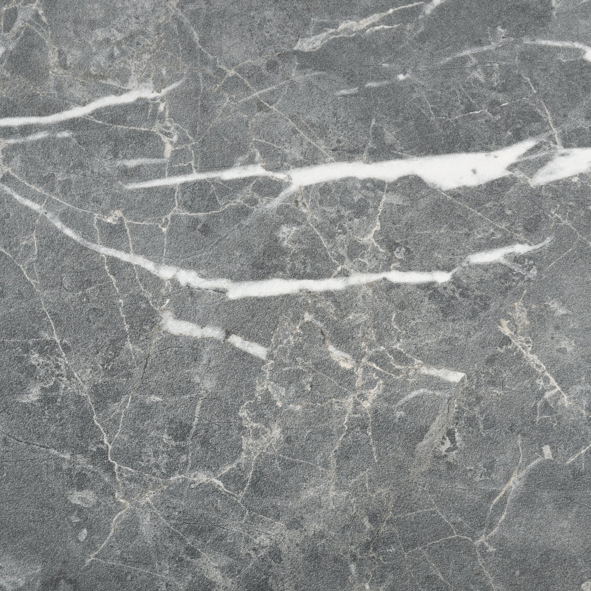 Round dining table with patented Smart Top in faux grey marble for visual appeal and easy care