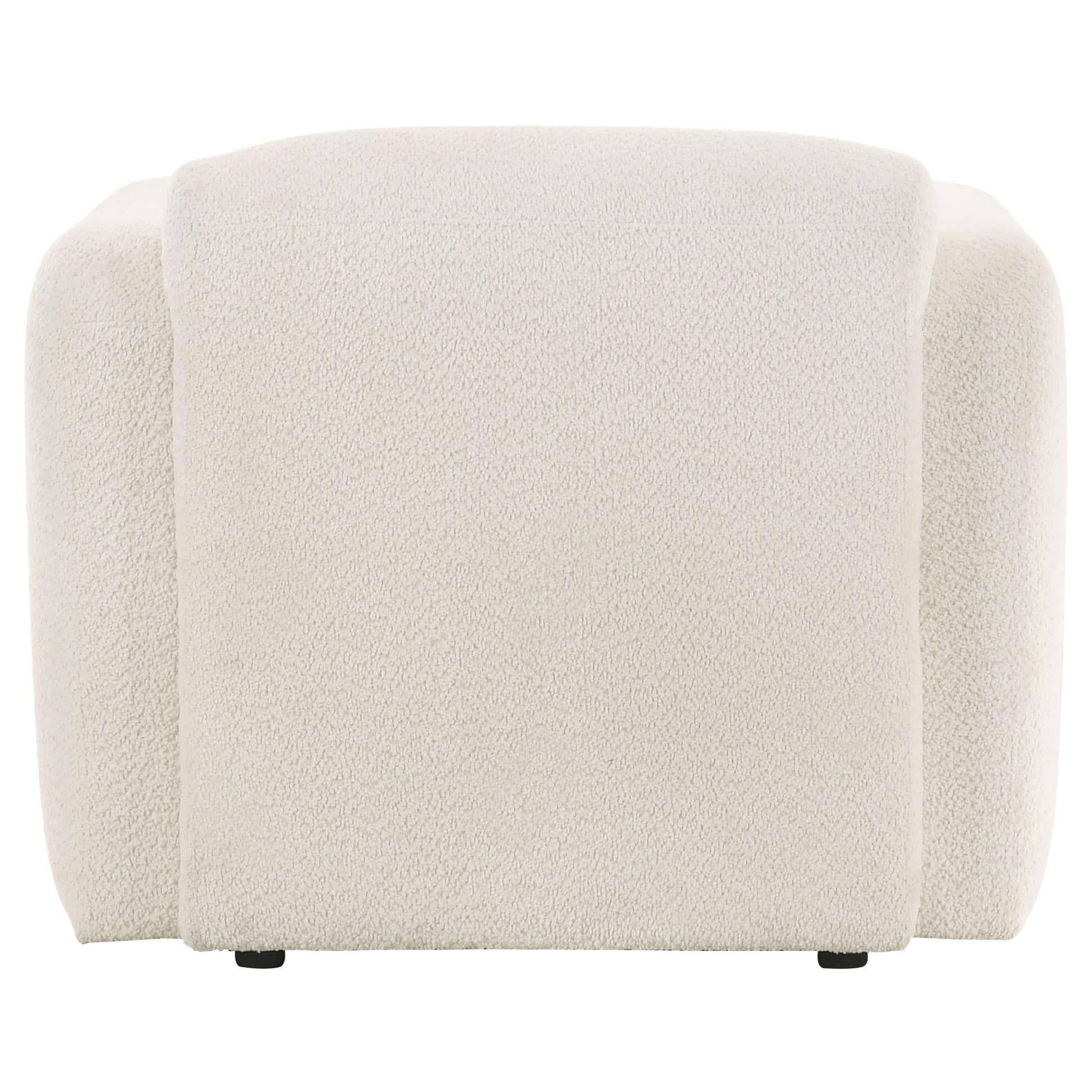 This modern accent chair brings sculptural softness and deep comfort to any living space. Wrapped in a richly textured fabric, its rounded frame flows from low-profile back to wide track arms with effortless ease. Plush foam cushioning and pocket coil seating deliver the ideal blend of sink-in softness and lasting support. With its minimal silhouette and gentle curves, this chair adds a cozy yet elevated presence to any room.