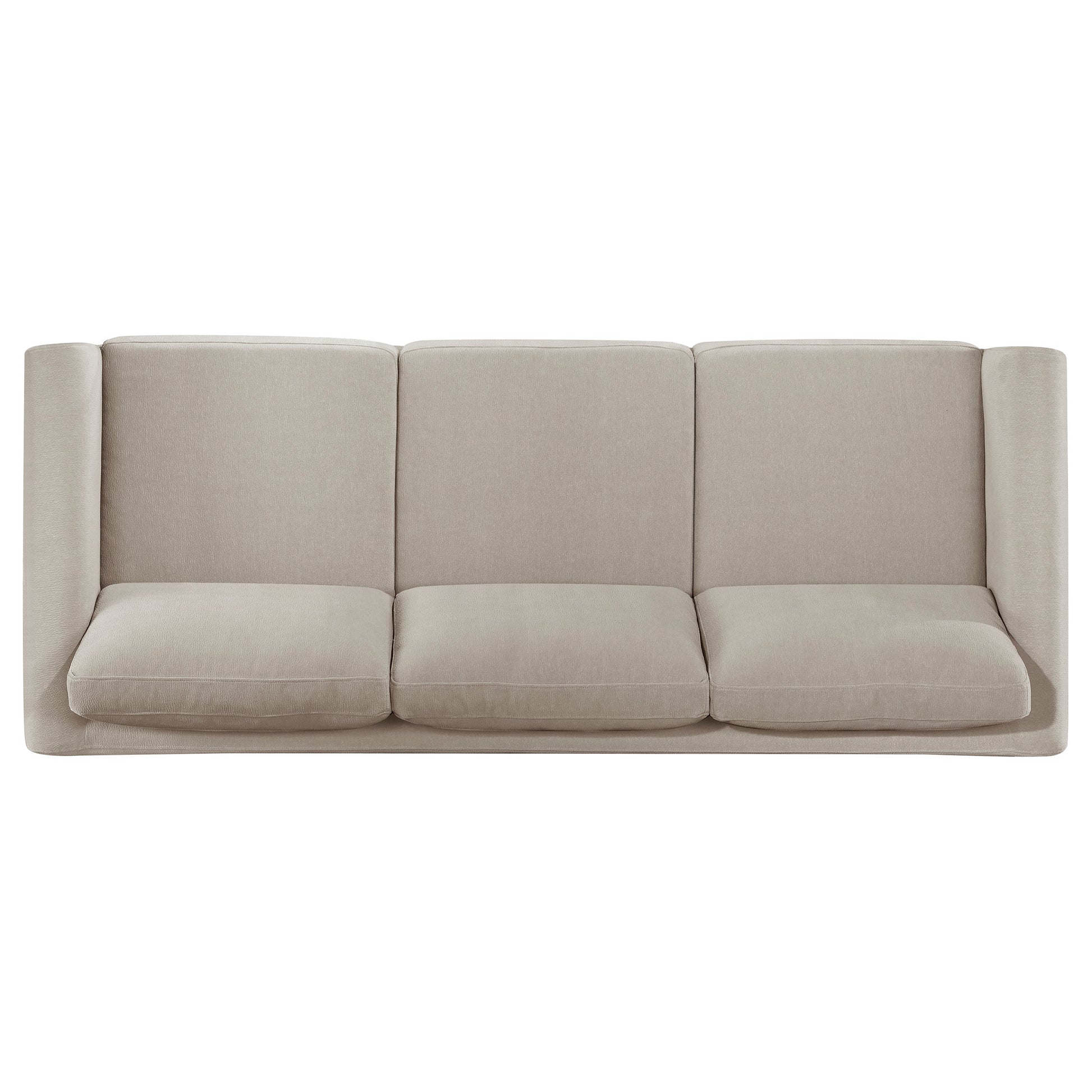 Sofa set features clean lines and recessed panel arms for a structured, modern silhouette