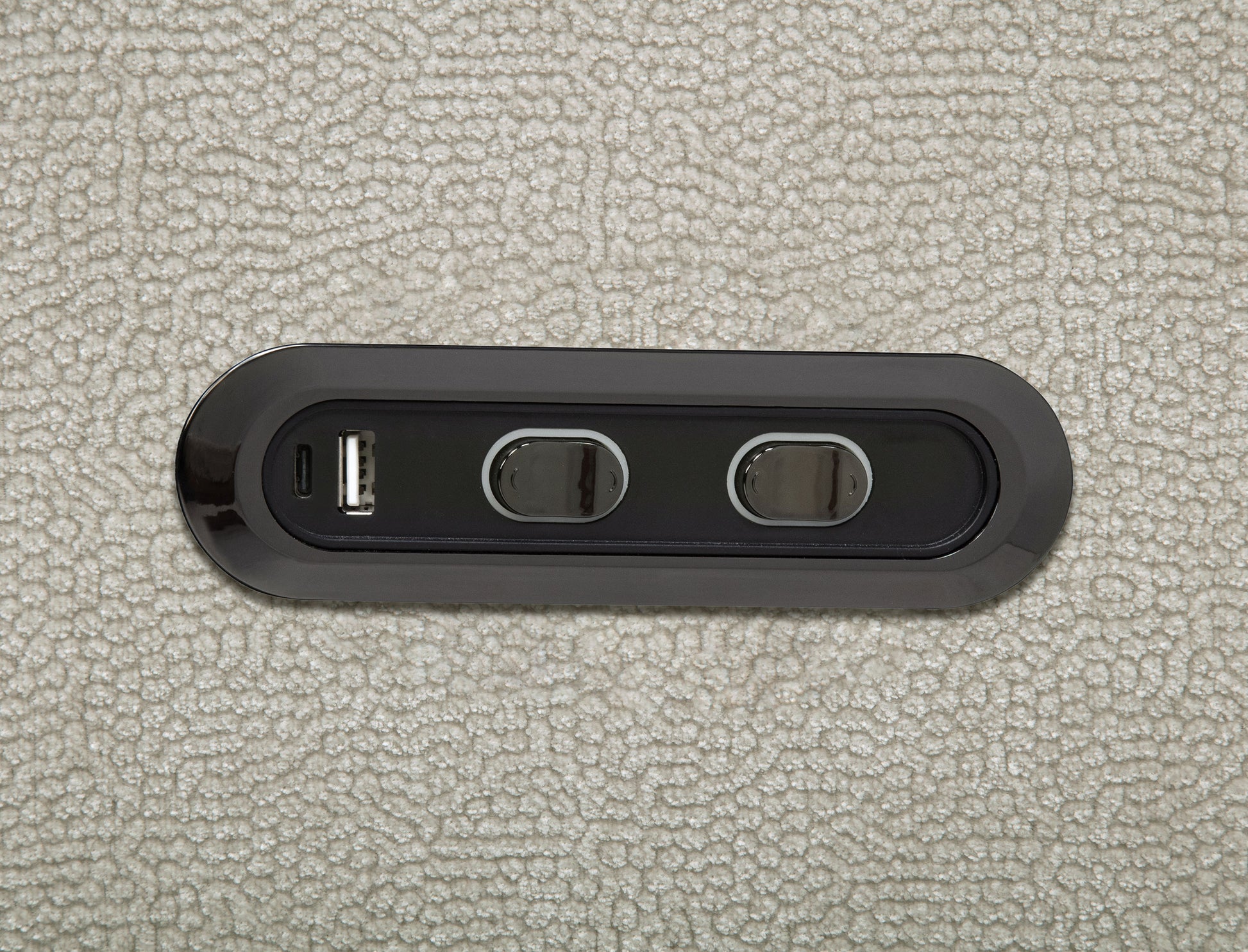 Dual recliners operate via smooth push-button control with one-touch home reset