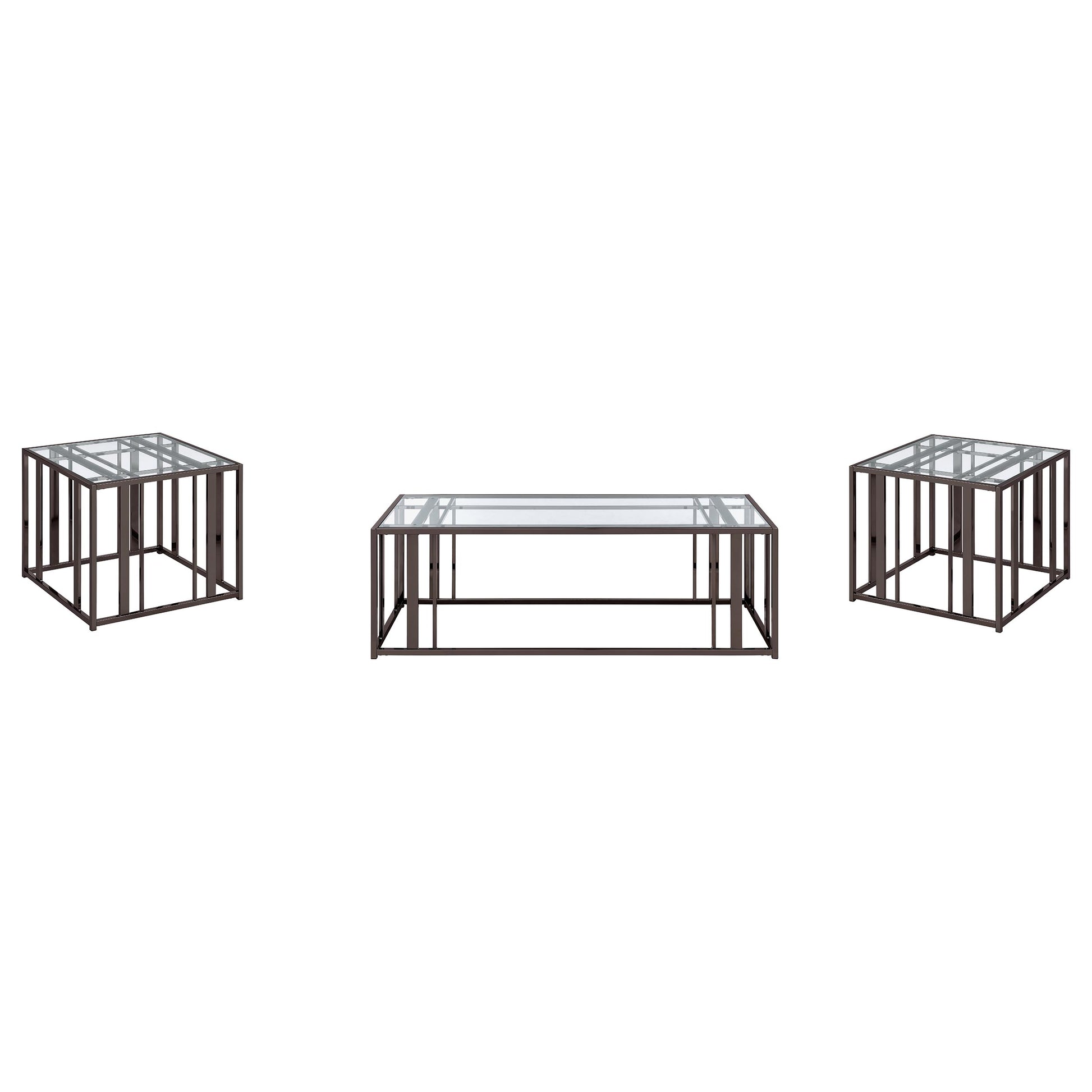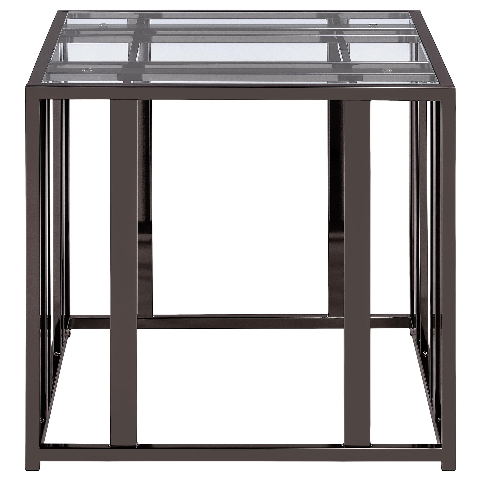 This coffee table set includes a rectangular coffee table and a matching end table, both featuring tempered glass tops and geometric bases crafted from heavy-gauge metal. The open-frame design exudes modern elegance while offering durability and functionality. Scratch-resistant materials ensure lasting quality, making the set ideal for organizing essentials or displaying decor. Its cohesive design provides a sleek, contemporary look for any living room.