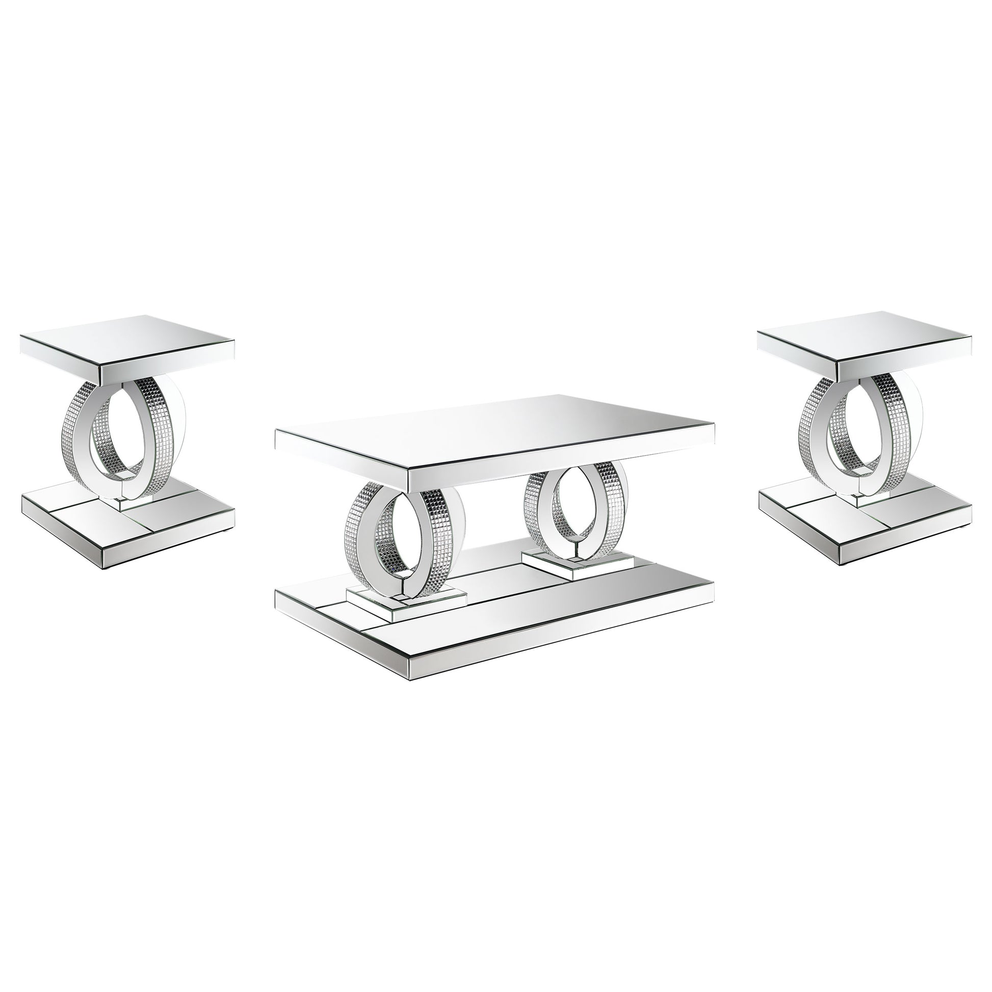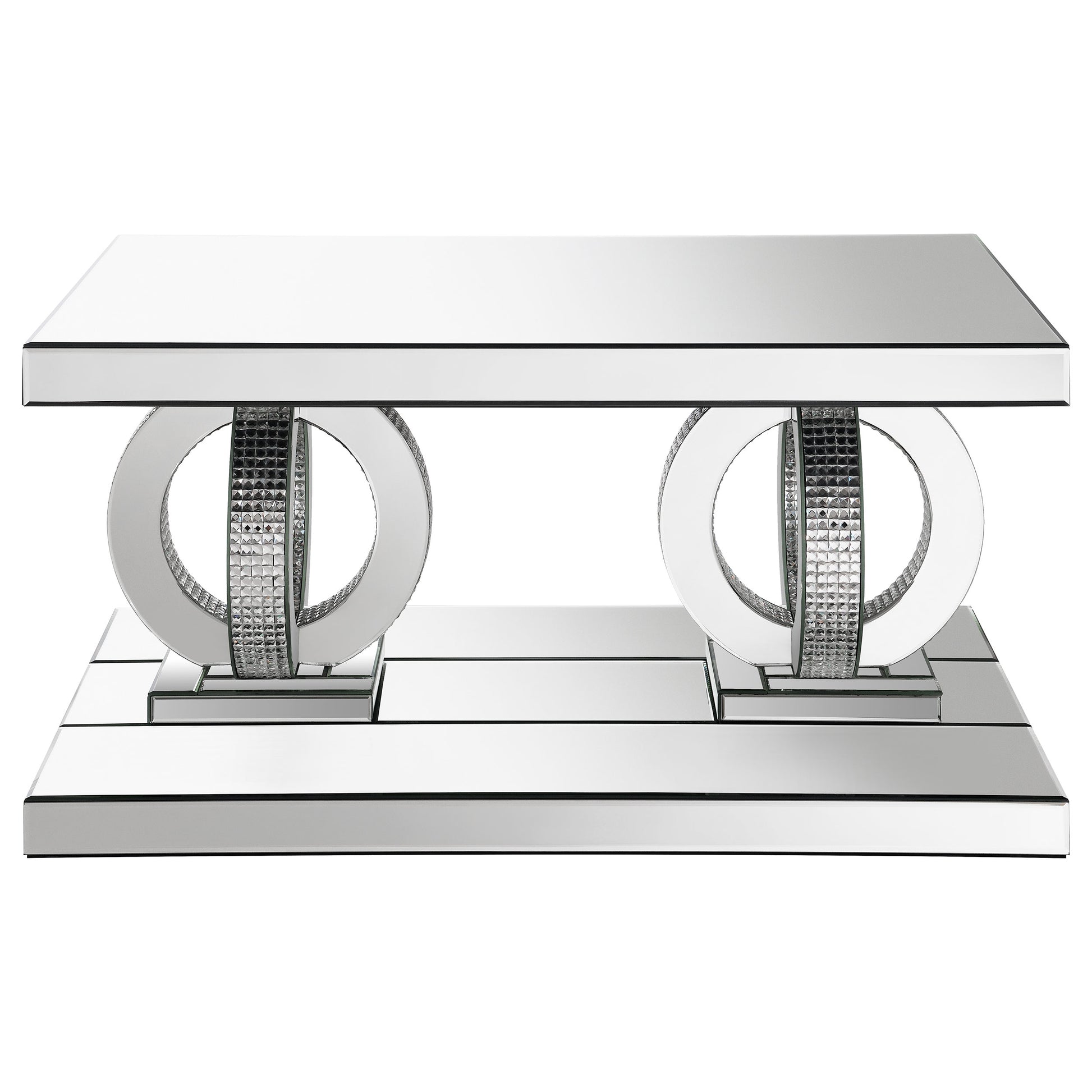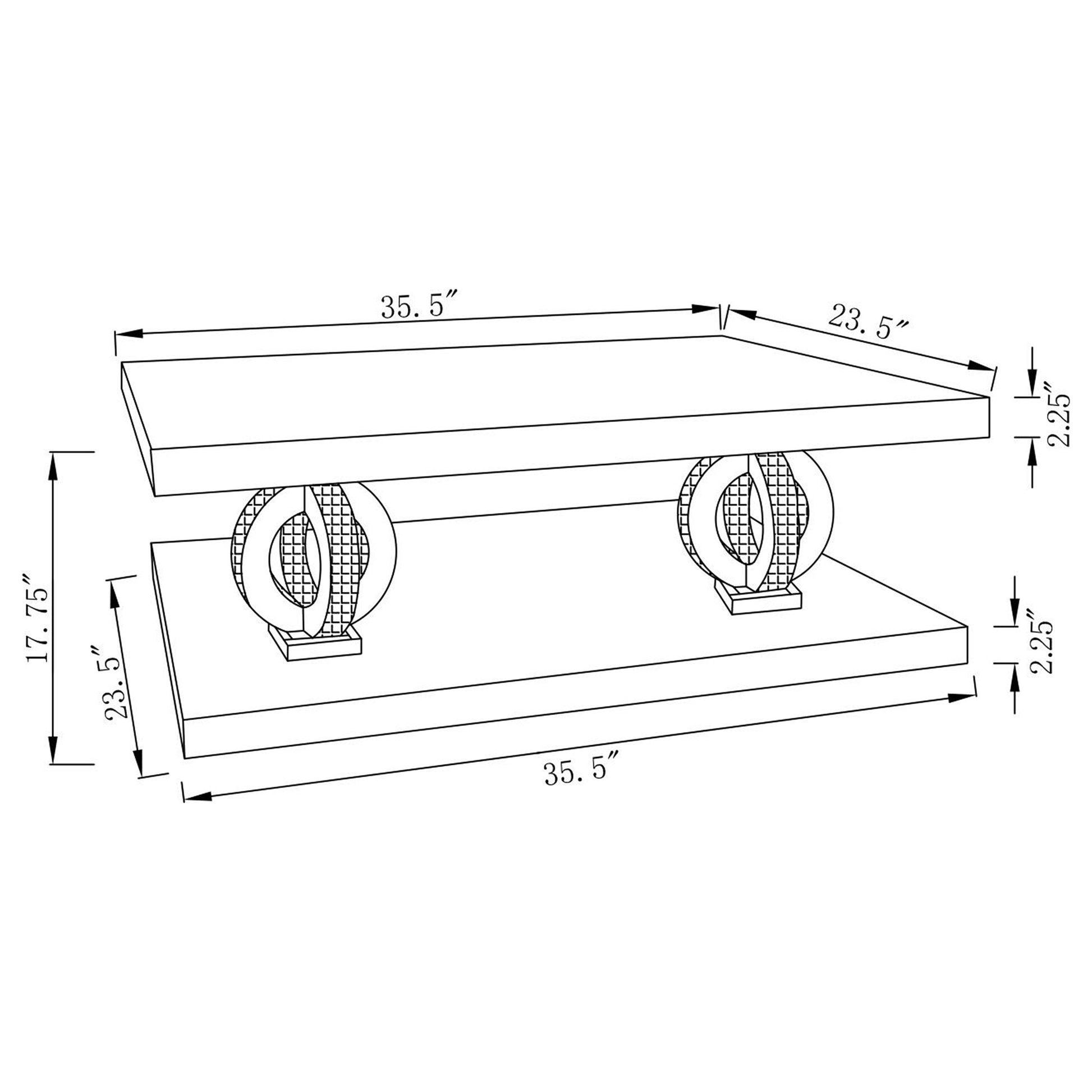 Transform your living room with this glamorous mirrored coffee table set. Featuring bases of interconnected dual rings adorned with dazzling acrylic crystals, every surface is wrapped in sleek mirrored panels with softly beveled edges. Designed to exude Hollywood Regency vibes, this set offers a chic and refined aesthetic, perfect for modern interiors.