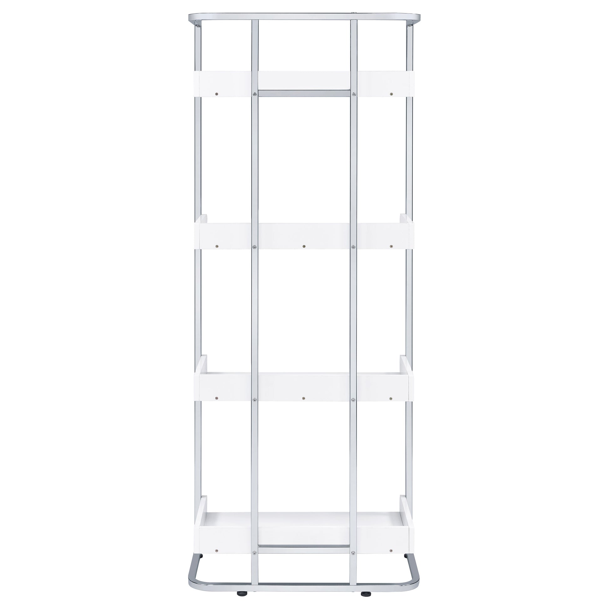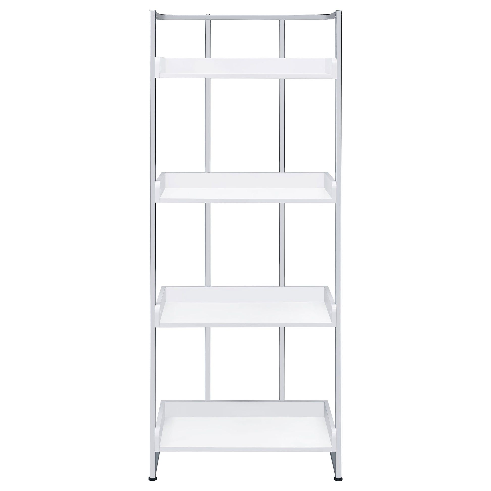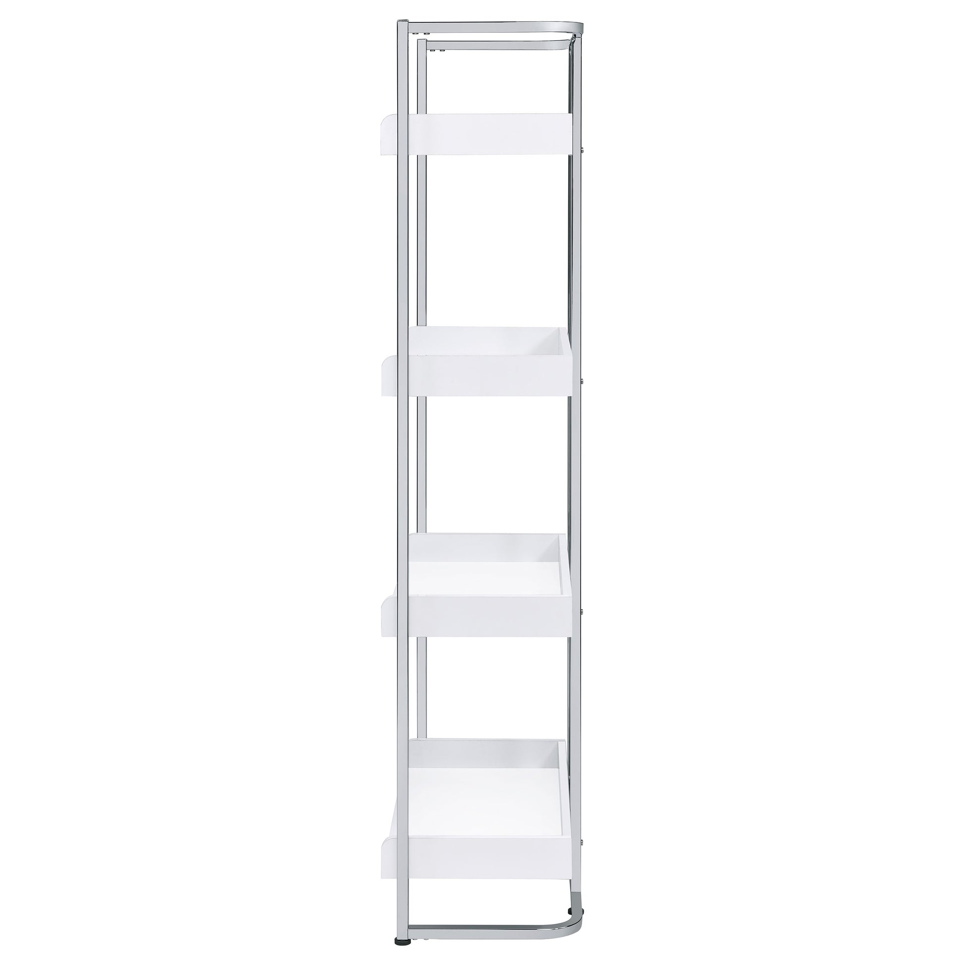 Contemporary four-shelf bookcase with rimmed trays and open back design