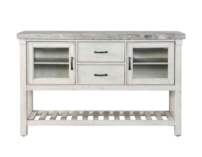 A casually elegant Server in a neutral palette, Canova fits the bill as a dining companion piece. A Cathedral White wood finish pairs beautifully with the solid gray marble veneer in a piece that can be used in classic, contemporary or farmhouse decors. Glass doors allow for a display area or can be used for electronics and remotes in an entertainment package.