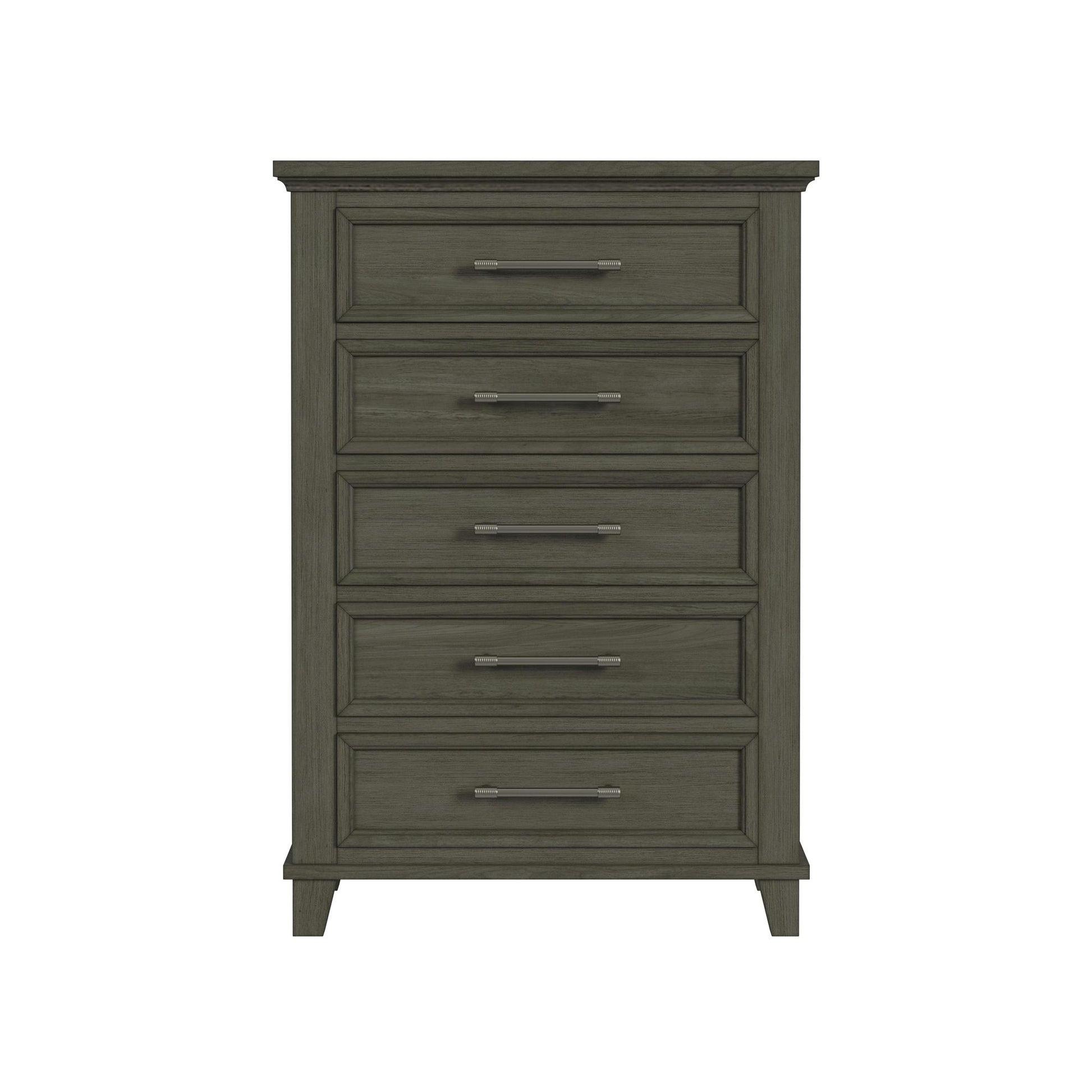 The Canterbury Chest exudes timeless elegance with its sleek smooth finish on rich cherry veneer, offering a sophisticated blend of modern and classic design. Each drawer glides effortlessly and quietly, thanks to the ball bearing drawer glides, ensuring a smooth and luxurious experience every time. Refined brushed nickel handles add a touch of sophistication, elevating the dresserÕs overall aesthetic. Stylish inset panel fronts provide captivating visual appeal, making this chest a stunning focal point in any bedroom. Completing the design are the sophisticated beveled edges that add an extra layer of charm and refinement. The Canterbury Chest is the perfect blend of functionality and elegance, bringing a sense of style and luxury to your living space.