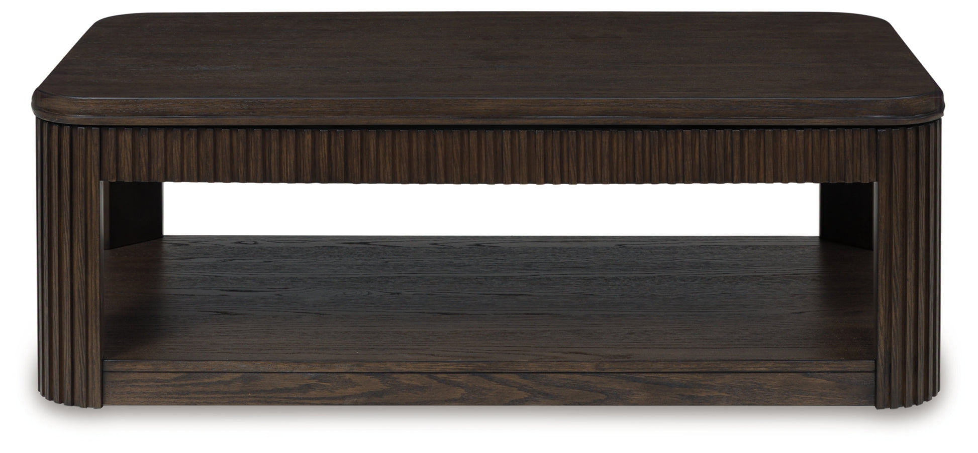 Cool, contemporary flair. Unbeatable function. This lift-top coffee table brings sleek style to everyday living. Fluted details on the apron and posts lend a trendy vibe. For a personal touch, dress up the lower shelf with your favorite decor. And with an integrated lift top, you can transform the table into a casual work area or extra dining space when needed.