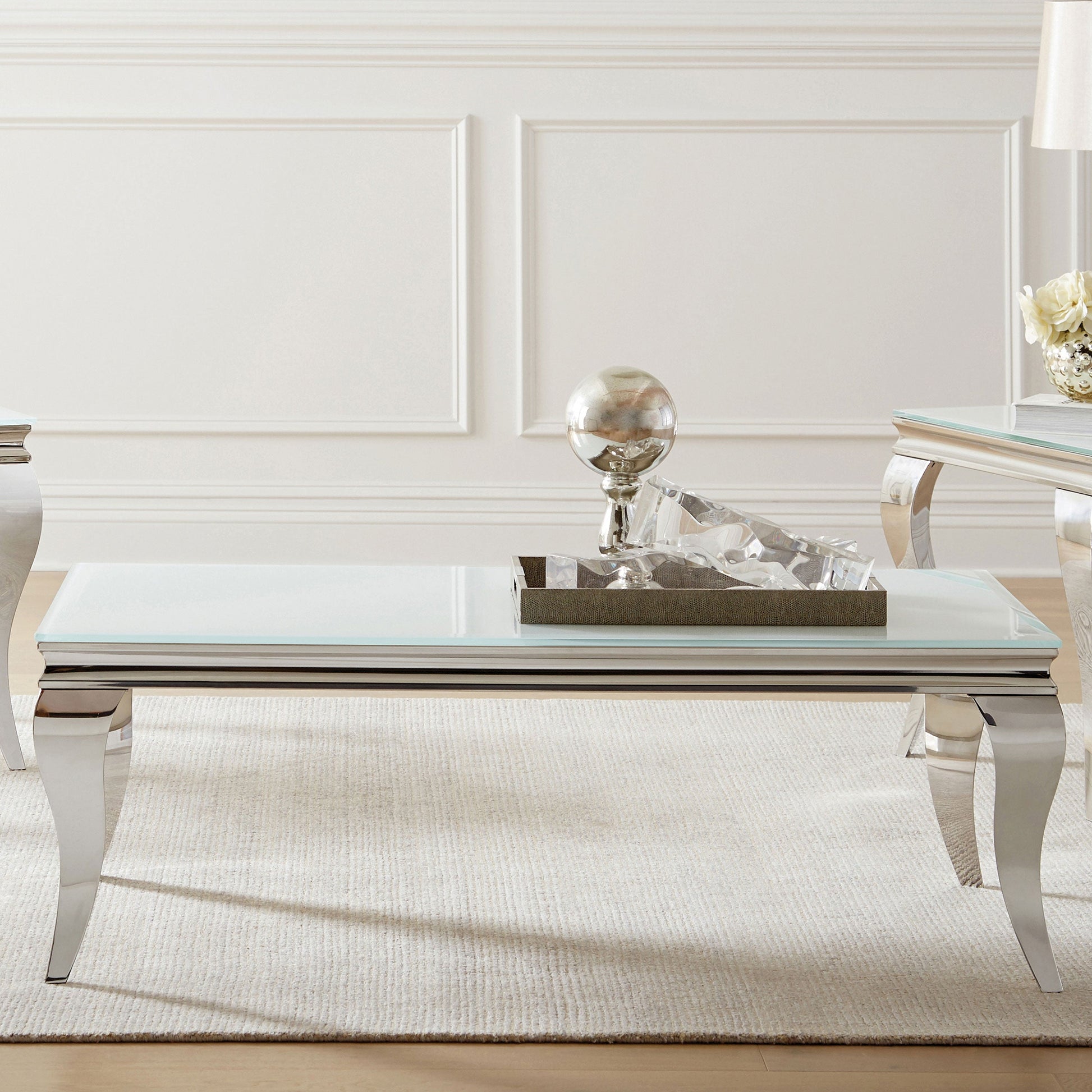 This coffee table showcases modern glam and functional sophistication with its tempered beveled glass top and polished stainless steel cabriole legs. The reflective finish and beautifully curved Queen Anne style legs offer a striking blend of timeless elegance and a majestic ambiance. Designed to enhance refined interiors, its ultra-modern aesthetic ensures both style and practicality. Smooth, easy-to-clean surfaces make this coffee table perfect for contemporary living spaces.