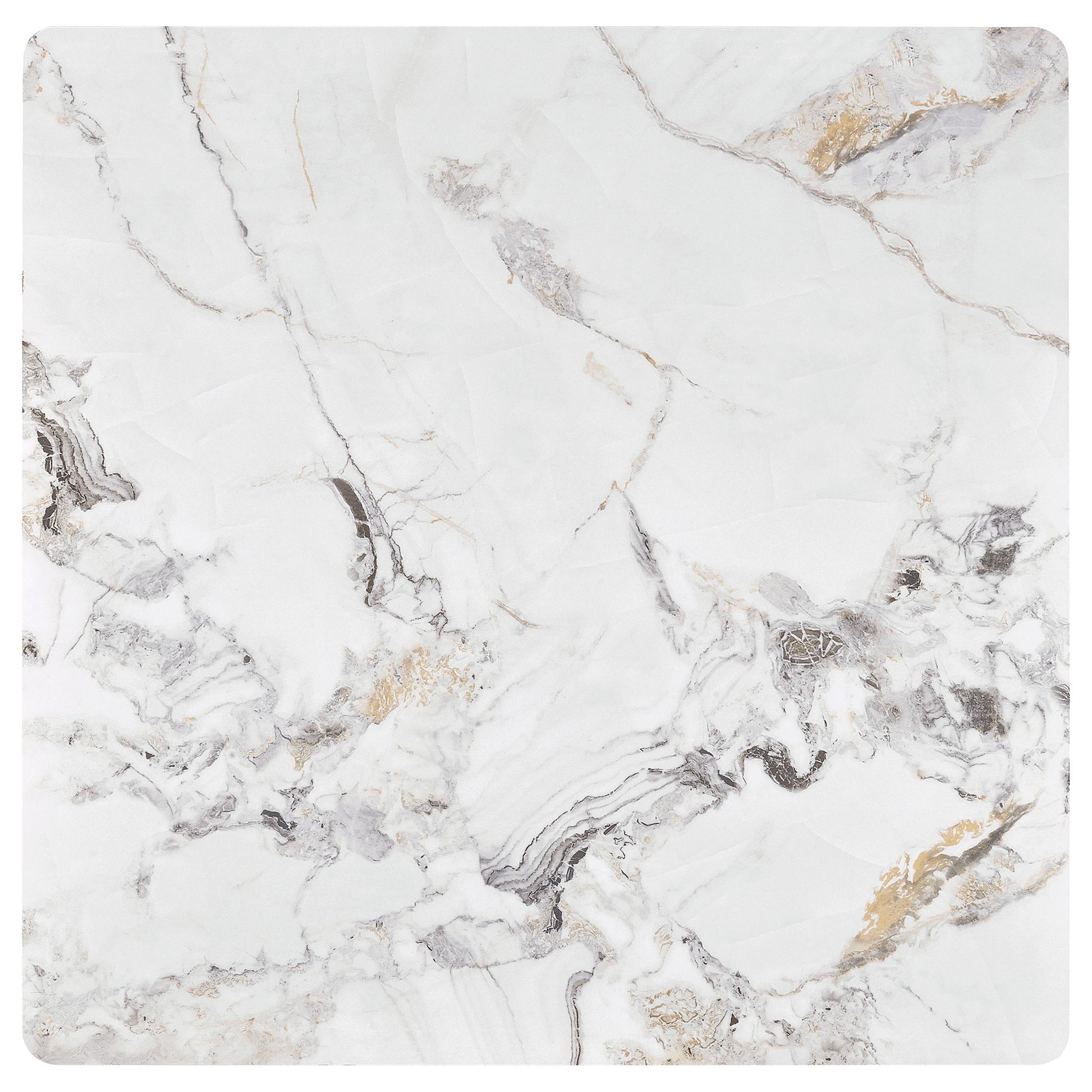 Sintered stone top layer over black tempered glass offers lasting elegance and strength