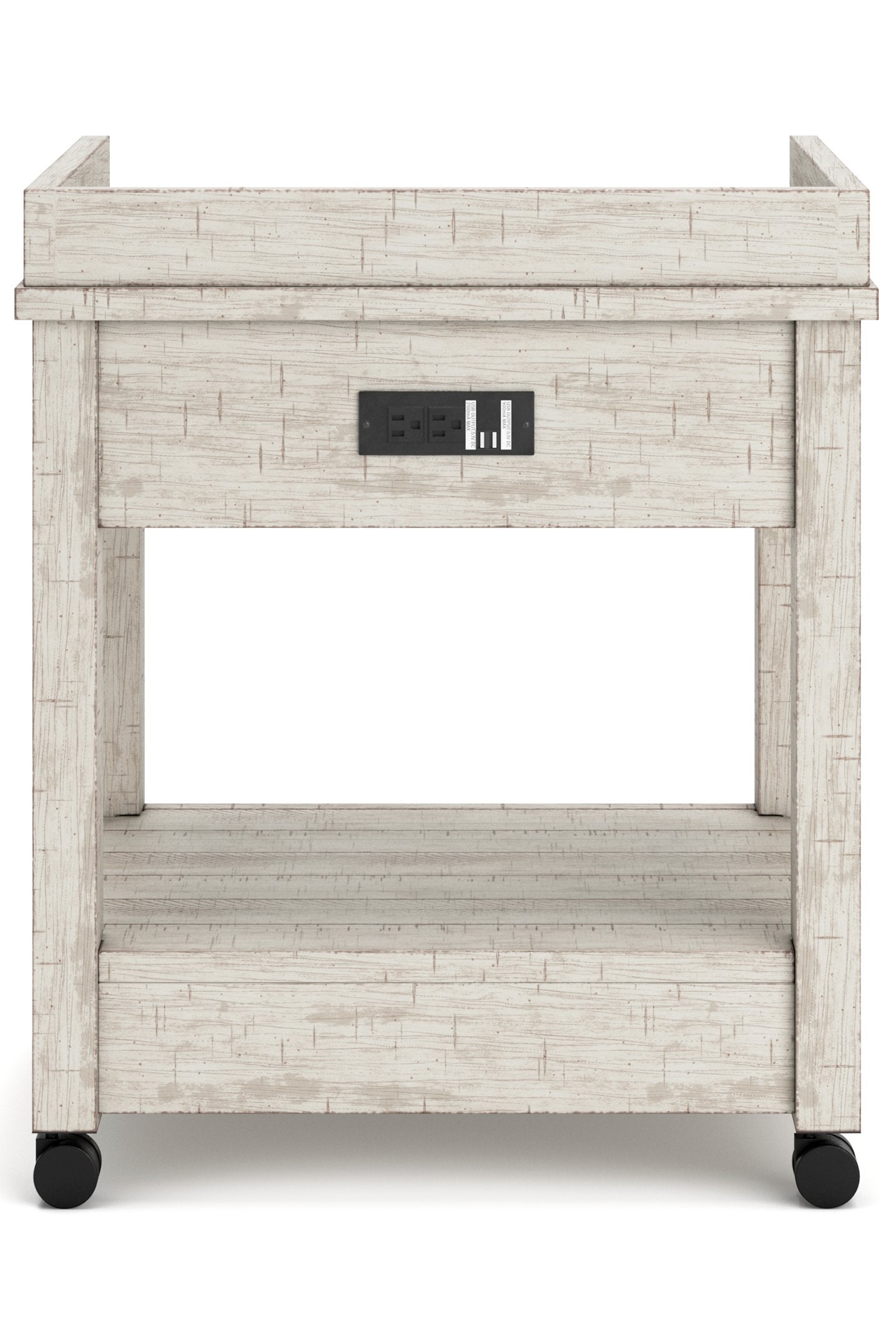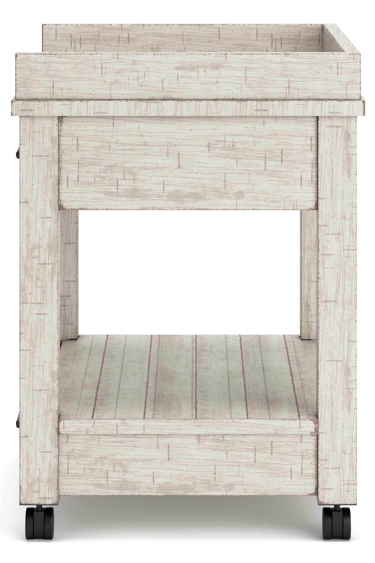 Set on casters for easy mobility, this printer stand rolls out a fresh look in modern farmhouse living. Two smooth-gliding drawers with dovetail construction reflect high quality that never goes out of fashion. Pair of electrical outlets and USB charging ports make it an indispensable home office essential.| Full Dimension | 21W x 18D x 25H |