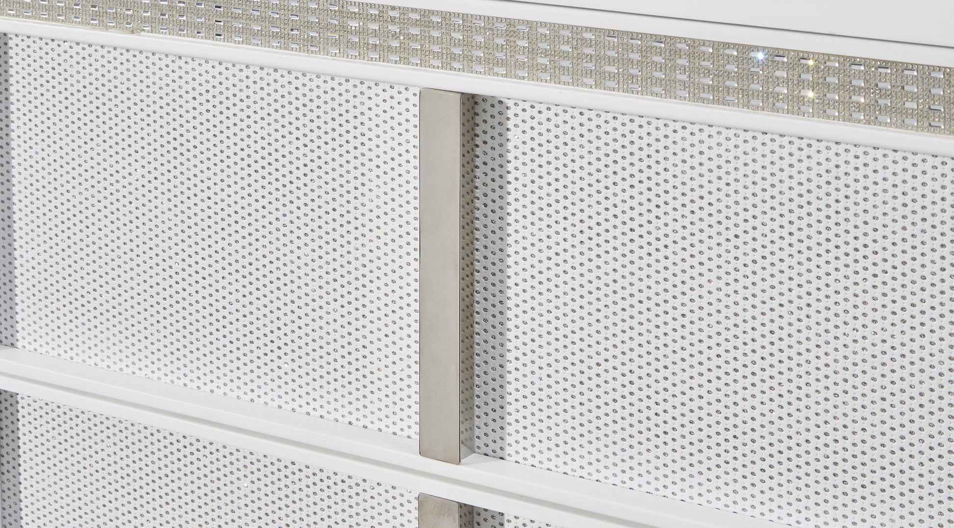 Transform your bedroom with this chest of drawers. Its modern design and glamorous details create a sophisticated retreat. The built-in LED lighting and rhinestone-framed drawers add style and practical storage. Let your sanctuary shine—and never let anyone dull your sparkle.| Full Dimension | 42W x 20D x 58H |