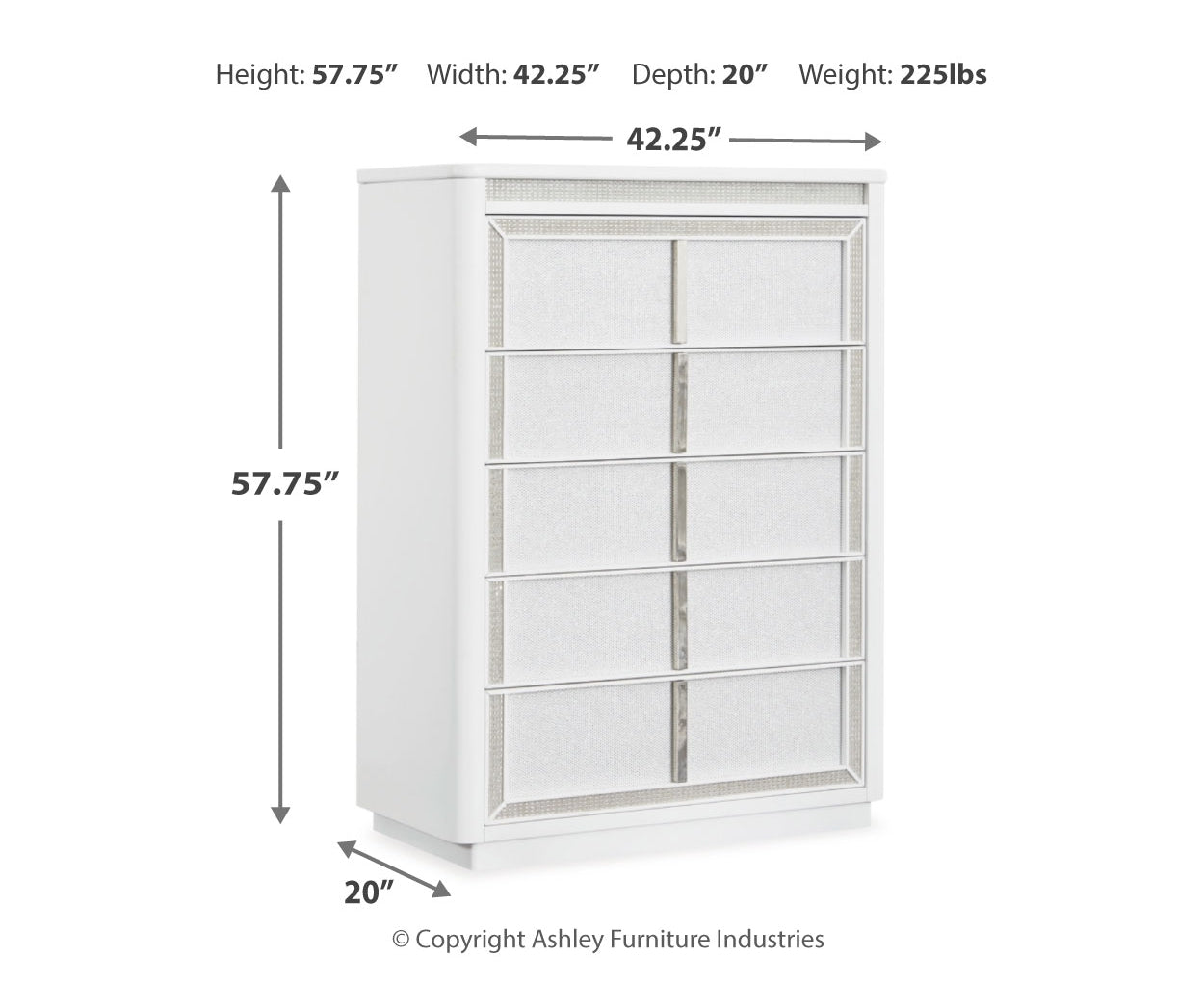 Chalanna Queen Upholstered Storage Bed, Dresser, Mirror and Chest