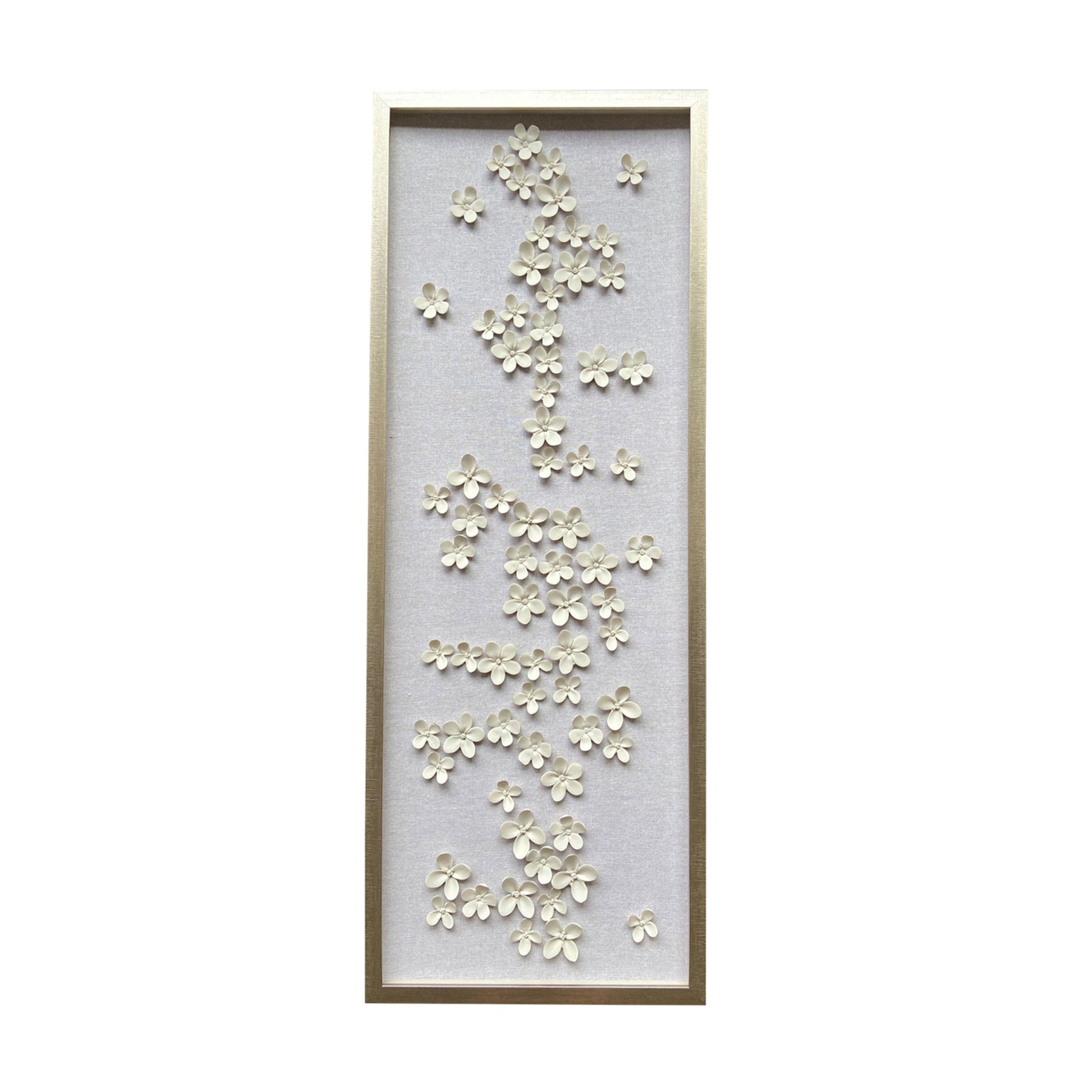 Add subtle elegance to any wall with the Charney Flower Shadowbox Art. This rectangular piece features a sparse arrangement of small, light-colored flowers on delicate stems, mounted against a soft, light-toned backing. Framed in a light brown/gold-toned shadowbox, it offers a refined, airy aesthetic that complements casual or contemporary décor.