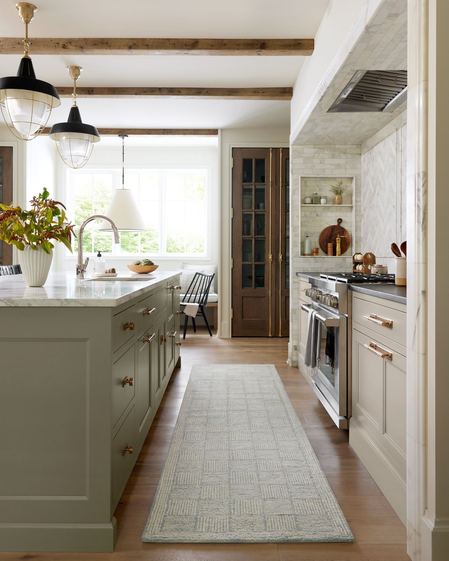 It’s no coincidence that the pattern of the Francis Collection for Chris Loves Julia x Loloi may remind you of tilework—it’s based on favorite flooring patterns of the couple, from tilework to parquet flooring. Hooked of 100% wool, the diamond and grid patterns soften and create a relaxed feel that’s still visually striking. The Francis Collection is made in India and GoodWeave certified, ensuring our commitment to ethical production and the support of weavers' communities.