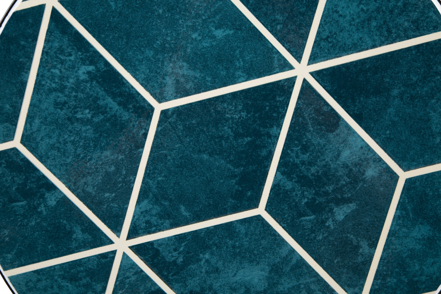 This accent table set enamors all with its striking style. The mesmerizing diamond pattern top graces your space with a splash of geometric design and a dashing two-tone teal glaze. Dazzle guests by making it a resting place for cocktails and hors d'oeuvres at partiesÑor keep this piece all to yourself as a bedside table for books and other baubles.