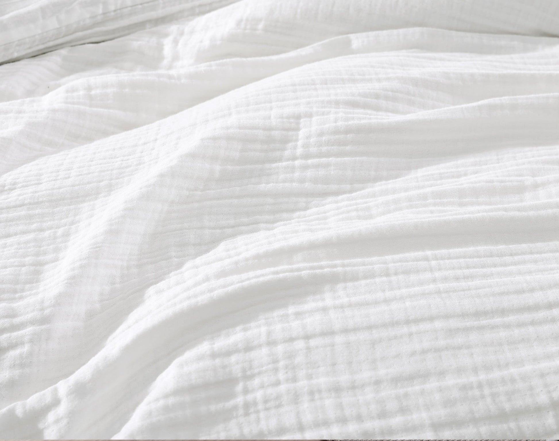 Experience the soft, breathable comfort of the Daniel Gauze Cotton 4 pc Comforter Cover Set in white. Crafted from lightweight gauze cotton, this set offers a cozy yet airy feel, perfect for a restful night's sleep. Its clean white design adds a fresh, elegant touch to any bedroom decor.