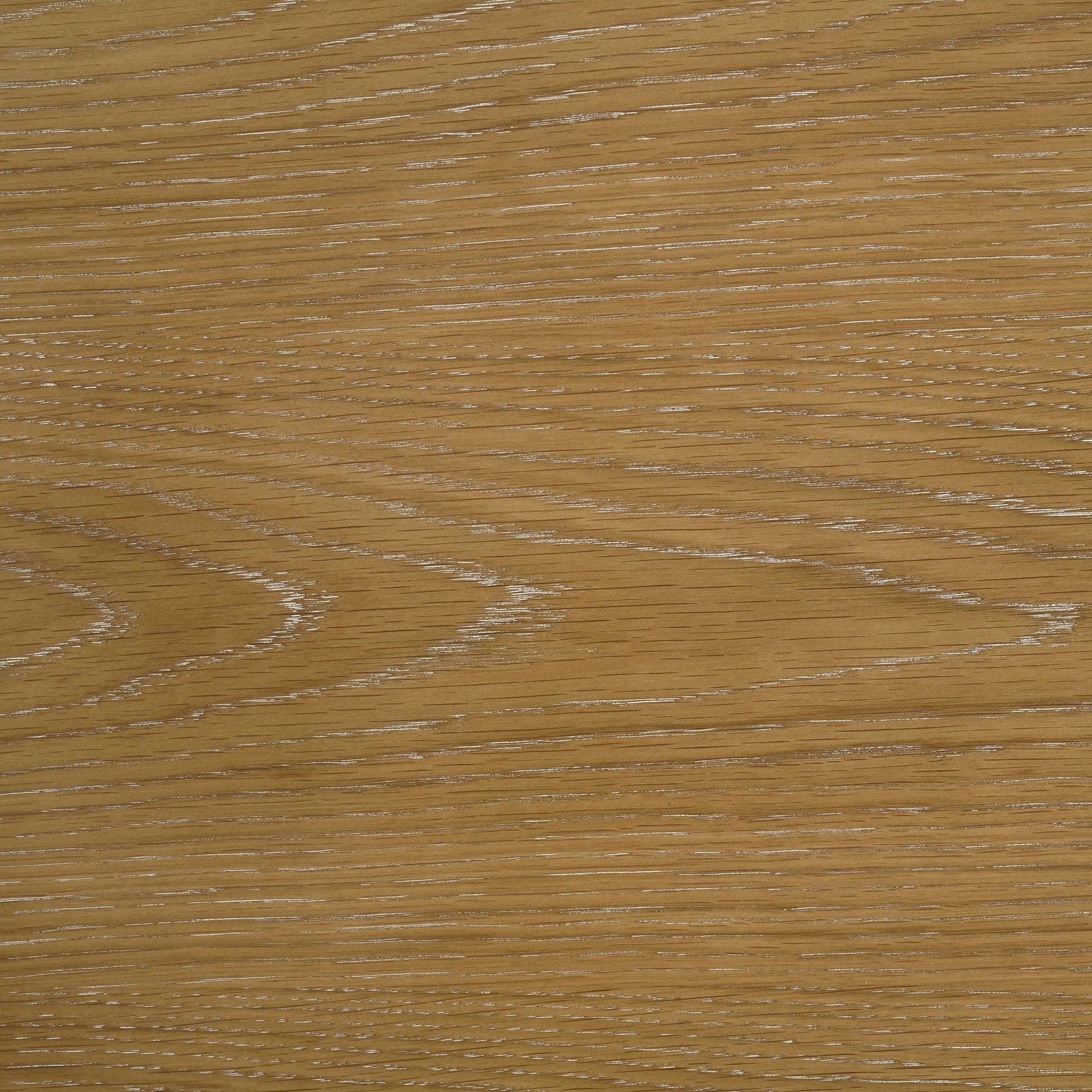 Versatile size and a timeless oak wood finish create a stylish pairing for this modern farmhouse round dining table. Its casual character is enhanced with a wedge veneer tabletop that creates a starburst effect, adding dimension and character to your kitchen or dining room. The thick tabletop and recessed apron are complemented with a decorative base that features flared legs and crossing stretchers, offering depth and stylish scale. The table is enhanced with joinery details that add craftsman character for a charming final touch. Choose this round table to seat four in your inviting dining space.