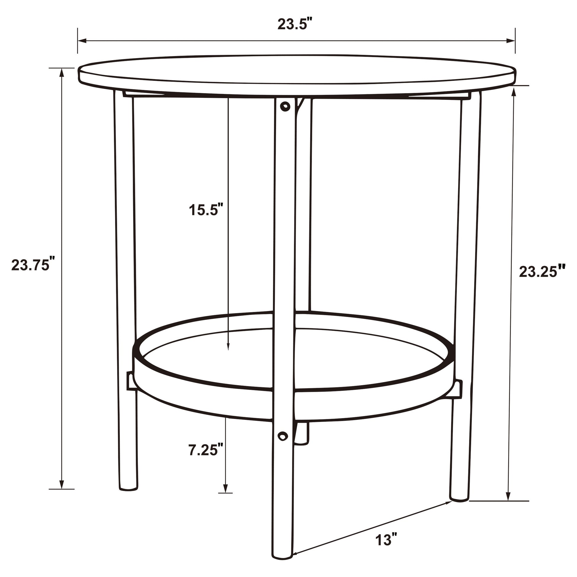 Complement your living space with the stylish, understated design of this transitional round end table. Its simple, clean lines exude farmhouse charm, with a neutral brown wood finish that brings warmth to any room. The round silhouette creates a sense of flow, while the full lower shelf, with its tray profile, offers a perfect spot for displaying your favorite decor or storing essentials. The black metal frame with tubular legs adds a crisp, classic touch to this versatile side table.