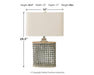 Whether your look is coolly contemporary or retro chic, this neutral table lamp simply delights. Its whitewashed finish over galvanized metal adds the perfect rustic refined tone. The shapely base, placed next to a sofa or beside a bed, rounds out the look beautifully.| Full Dimension | 19W x 11D x 29H |