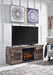 Make this TV stand with LED fireplace insert the center of attention with its popular urban eclectic style. Its rustic finish over a replicated pine grain creates an authentic natural look for your home entertainment area. You'll love its functionality. Two spacious cabinets with shelved storage easily accommodate media needs. What really turns up the heat: an electric infrared fireplace insert with faux firebrick surround that operates with or without infrared heat. With the touch of a button, adjust the temperature and the flame brightness, and set the timer for long-lasting enjoyment.