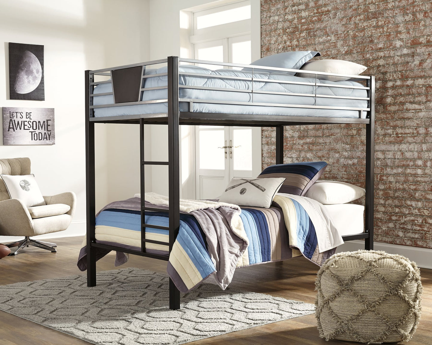 Step up to a higher level of style in kids bedroom furniture with this twin bunk bed. A cool response to the trend in modern industrial design, this metal bunk bed sports a black and gray for a welcome touch of maturity.| Full Dimension | 41W x 75D x 62H |