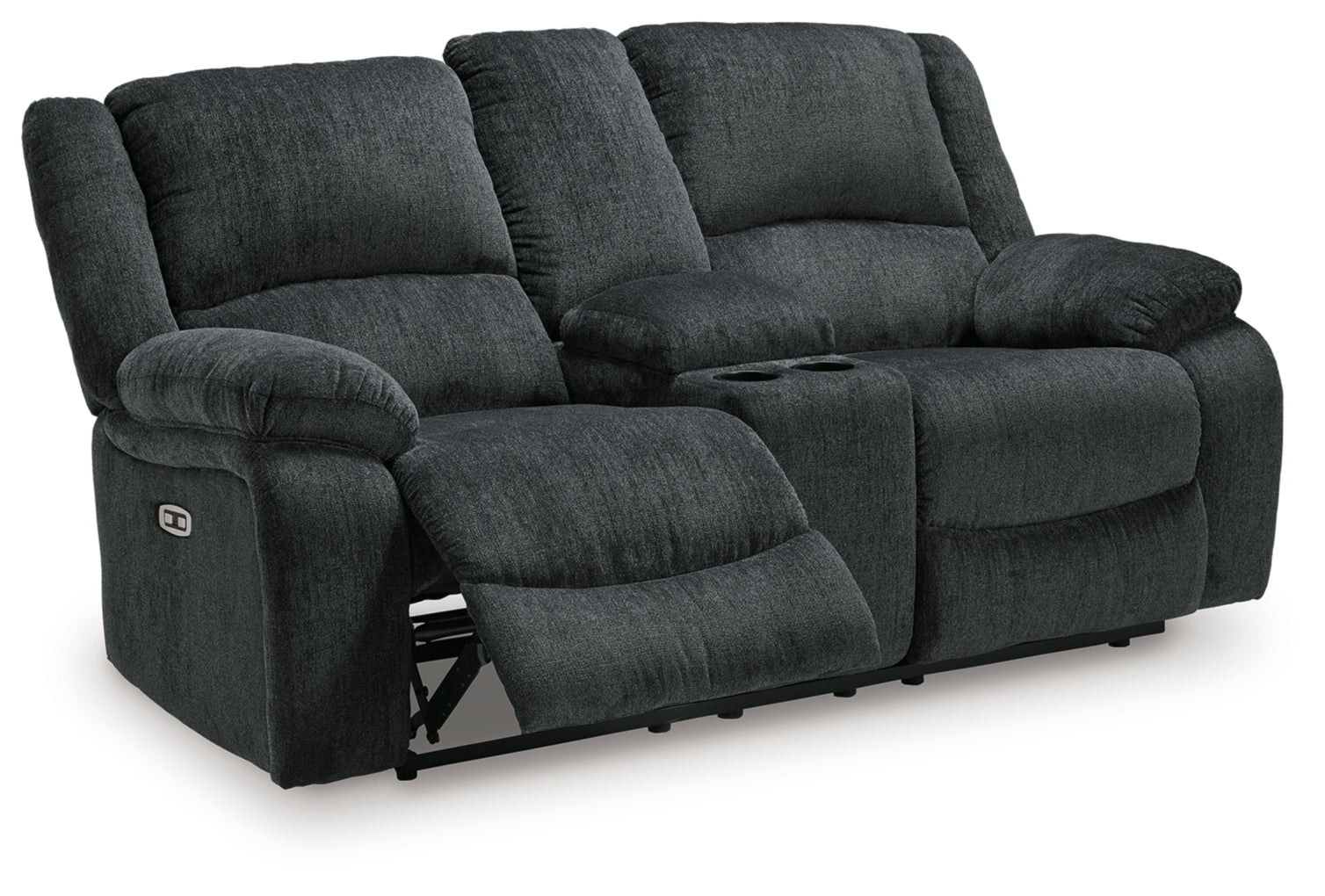Built for luxury, this power reclining loveseat with center console lets you kick back in reliable style. The thick, softly textured chenille upholstery provides a comfy surface on which to lounge. With bustle back construction and thickly cushioned armrests, this piece gives you the dependable, powered support you need to unwind with the convenience of the center console to ease your evening.