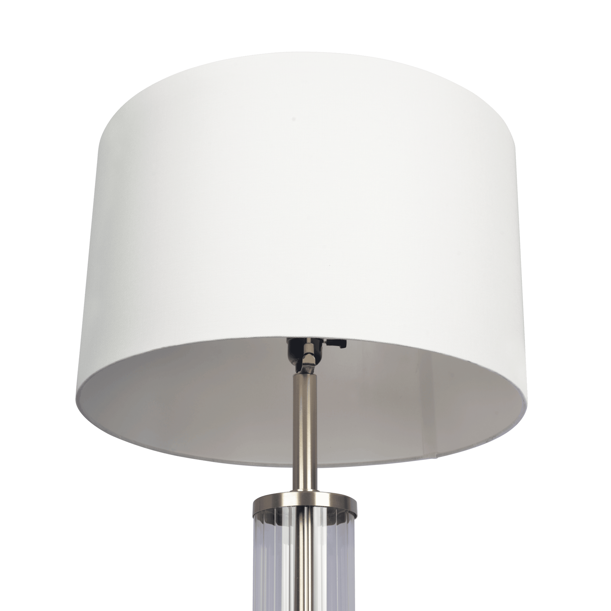 Illuminate your home with the sleek and modern Echo Brushed Nickel Table Lamp. The clear glass body creates a sophisticated and contemporary look, while the on/off switch and metal base offer convenience and durability. Elevate your space with this stylish and functional addition. Bring a touch of elegance and convenience to your living space with the Echo Brushed Nickel Table Lamp. The clear glass body exudes a modern and refined look, while the on/off switch and metal base provide the ultimate in functionality and durability. With this stunning and practical lamp, you can effortlessly elevate the ambiance of any room in your home.