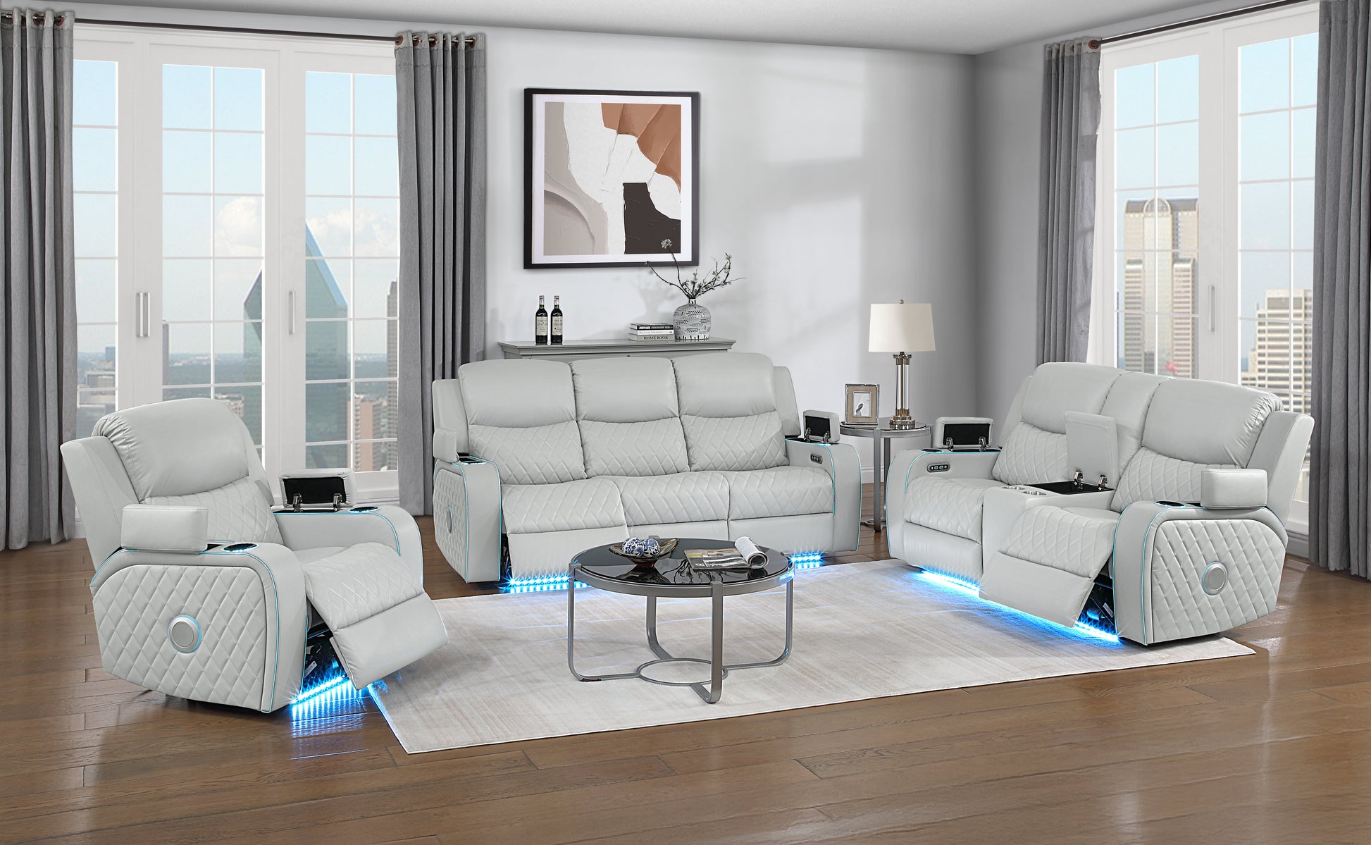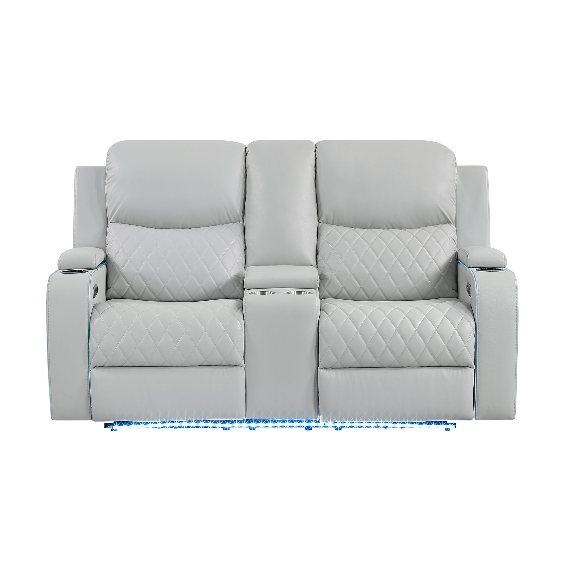 Bring luxury home with the Elonzo loveseat, where quilted diamond stitching meets modern power motion comfort. Adjustable headrests, built-in speakers, and glowing LED accents create a cinematic experience, while the center console with cup holders and storage keeps everything within reach.