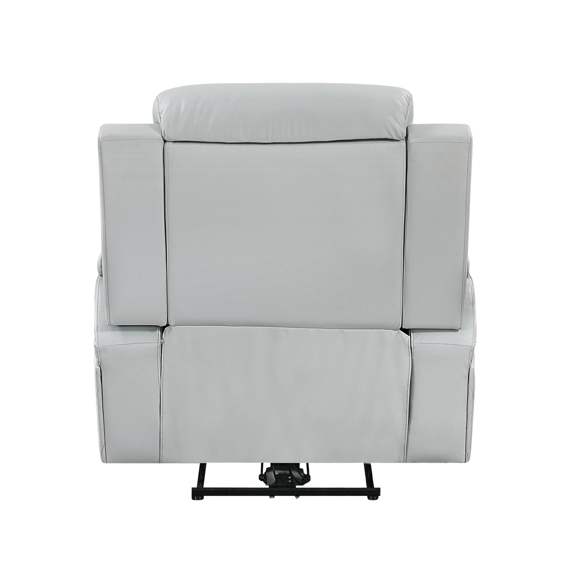 Transform your living space with the Elonzo recliner, where luxury meets innovation. Wrapped in smooth light gray synthetic leather with elegant diamond quilting, it offers both comfort and sophistication. Enjoy power reclining, adjustable headrest, built-in speakers, and ambient LED accent lighting—all designed to elevate your home entertainment experience.