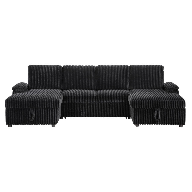 Ember Black Sectional Sofa W/ Pull Out Bed & 2 Chaise