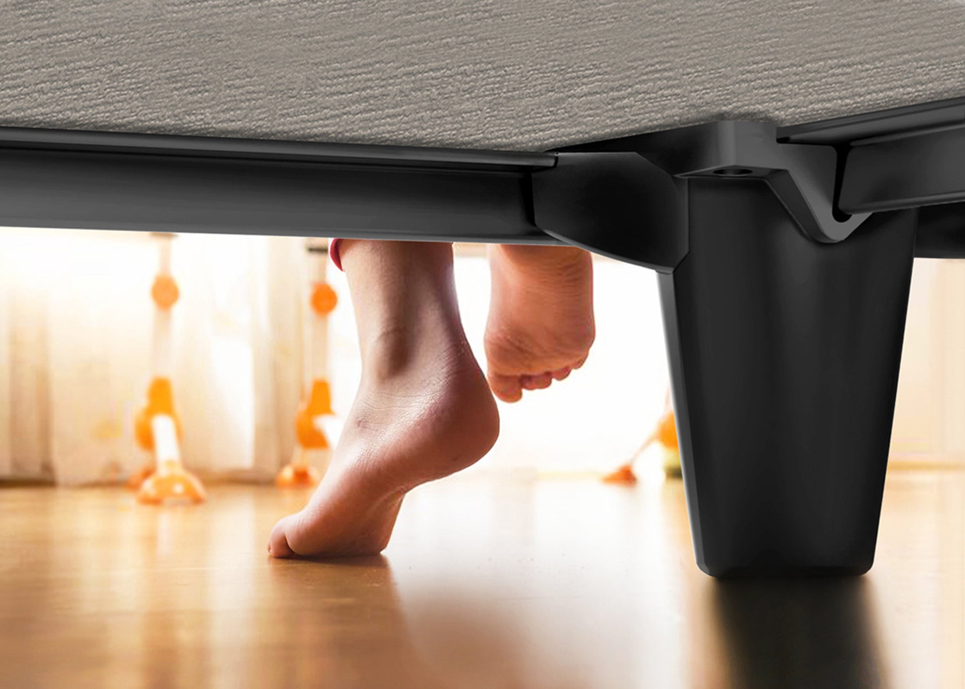 The emBrace® 360 Bed Base by Knickerbocker combines elegant design with unmatched strength and functionality. Made from heavy-duty reclaimed railroad steel encased in fine resin, it features smooth contours, tapered legs, and a tool-free assembly in under a minute. This freestanding base supports any headboard and requires a box spring or foundation. Its internal T-Steel design delivers twice the steel of traditional frames, offering edge-to-edge, flex-free support with zero motion transfer—extending the life and comfort of your mattress. Silent and safe, the emBrace® 360 eliminates squeaks and covers all steel surfaces to prevent injury. It stands 7.5 inches high, works on any flooring, and moves easily with lateral pressure. Available in Charcoal Black, Chocolate Brown, Stone Gray, and Pure White, it’s Knickerbocker’s finest creation yet.