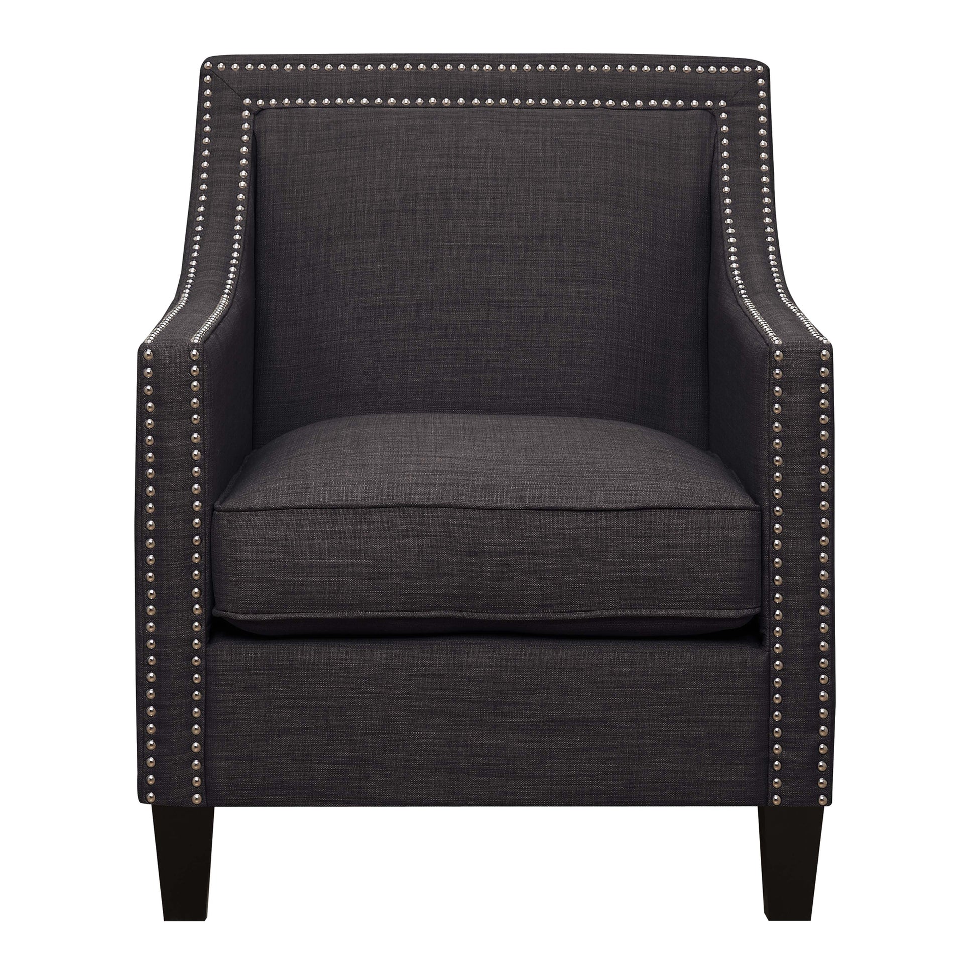 The Erica Chair boasts a refreshing combination of contemporary design with a touch of vintage flare. Its clean lines, low back, and straight edge arms are accented by nail head trim and dressed in a fashionable charcoal fabric upholstery.