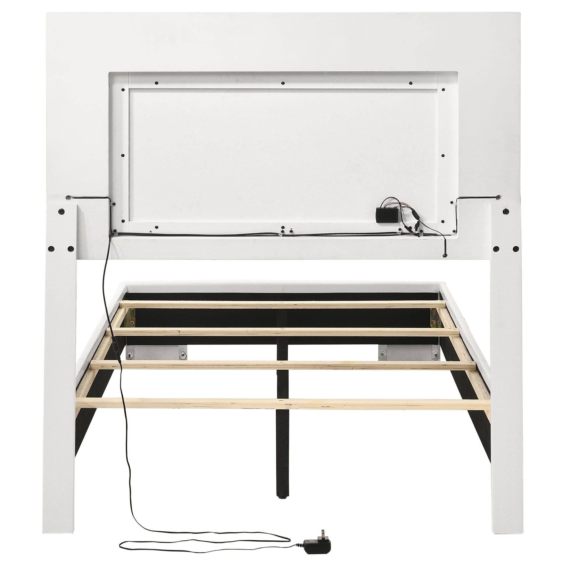 Bring contemporary sophistication to your bedroom with this modern panel bed. The headboard features a sleek white high gloss finish, offering a clean and minimalist aesthetic. The bed frame is upholstered in smooth white faux leather, adding a refined touch to its streamlined design. Built for durability and support, this bed delivers both style and function, making it a perfect addition to a modern bedroom.