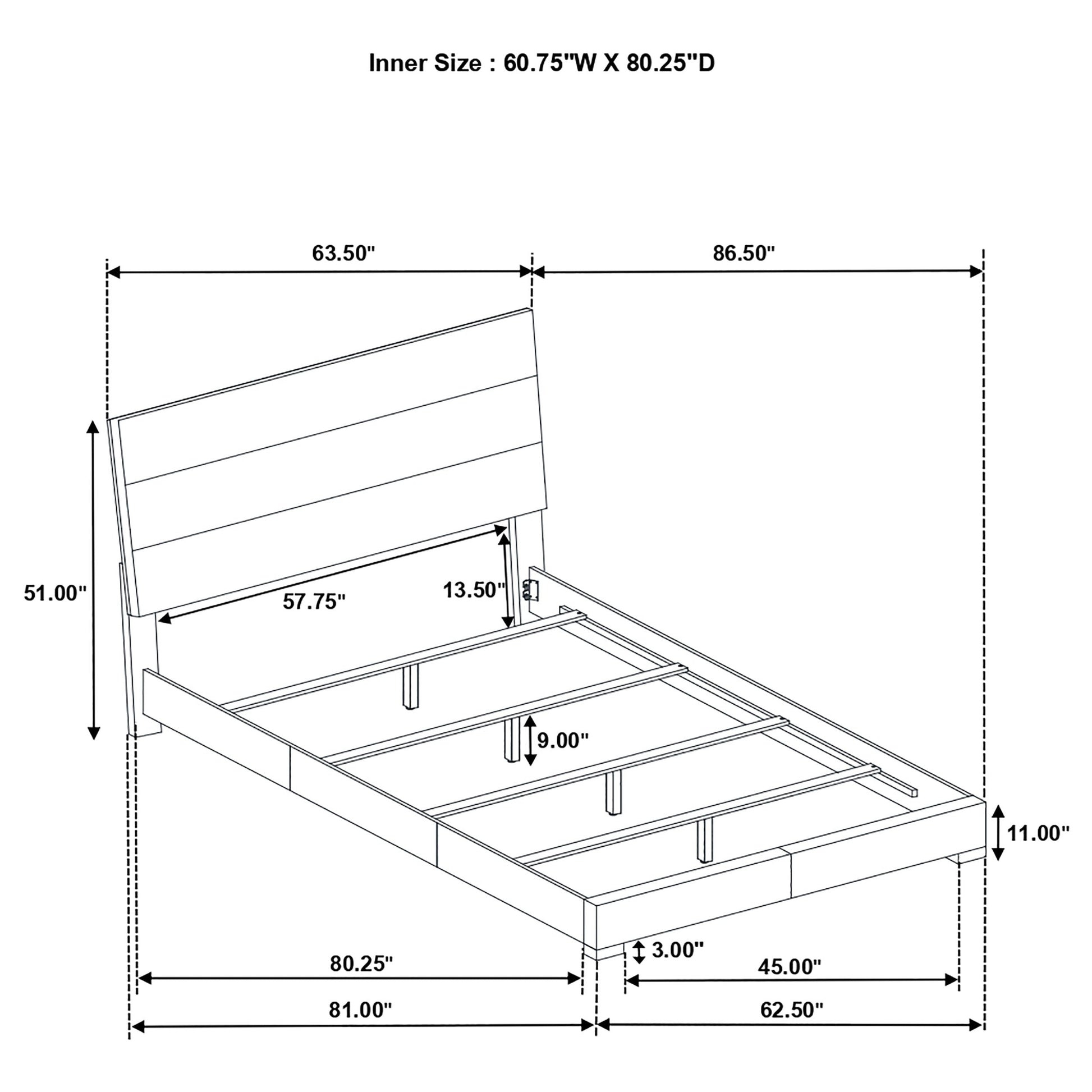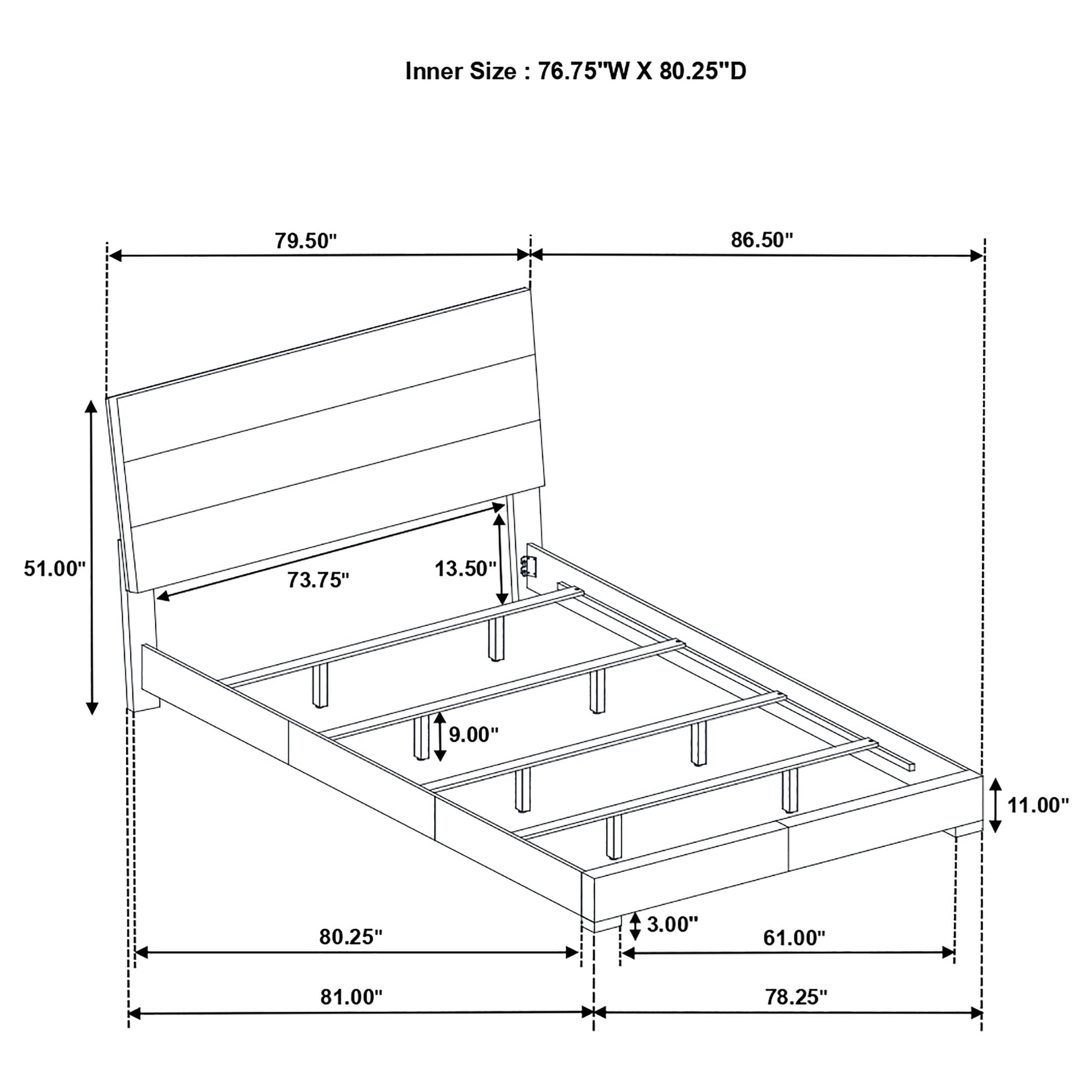 Eastern King Bed: Width: 79.50, Depth: 86.50, Height: 51.25, Weight: 100.77