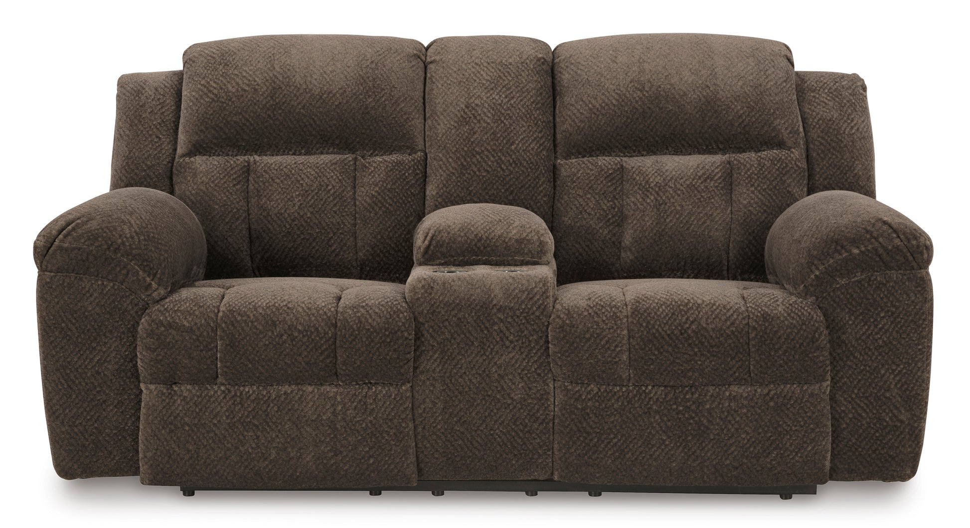 With its large-scale design, this extra-spacious reclining loveseat with console is a masterclass in accessible style. Plush, ultra-soft upholstery keeps everyone cozy as you lounge with family or guests. In a neutral hue, it seamlessly suits different aesthetics as your taste changes. Time to relax? The loveseat's pull tab reclining allows you to mellow out with ease.