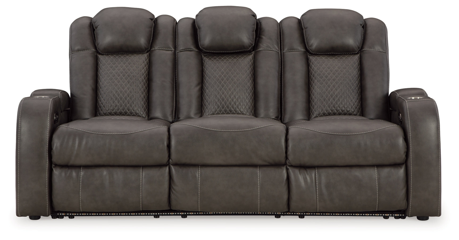 This power reclining sofa goes beyond basic comfort. It upgrades the everyday, turning your living room into an entertainment hub. DonÕt want to leave your seat? Keep essentials in reach with assorted charging options, cup holders and storage arms. You can create an even cooler vibe for family movie nights and friendly gaming matches with LED lights. And your sleek style isnÕt compromisedÑits diamond stitching and streamlined arms recall the aesthetics of luxury automobiles.