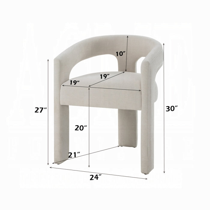 Bring contemporary elegance and comfort to your dining space with the Gamarya Side Chair. Part of the Gamarya Dining Collection, this chair pairs seamlessly with the collection’s fluid, stylish design while adding its own distinctive flair. Upholstered in crisp white chenille, the chair offers a soft, inviting seat, while its gracefully curved frame and sculpted lines create a visually striking silhouette.