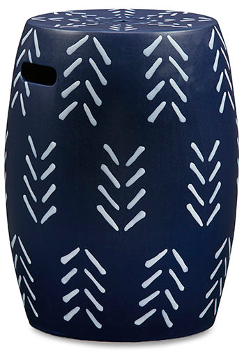 Freshen up your decor with the striking design of this stool. A navy and white pattern plays up the piece’s visual appeal, while hand holds on the sides and a drain opening on top provide modern functionality. Suiting both indoor and outdoor spaces, this stool brings a subtle flourish of style to your contemporary sanctuary.| Full Dimension | 12W x 12D x 18H |