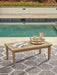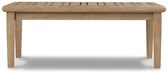 Discover a high-style alternative to traditional outdoor furniture. This outdoor coffee table marries sturdiness and style in such a delightful way. Better yet, it has the edge when it comes to affordability. For that much more weather protection, the table's eucalyptus wood frame with slat styling is treated to a 5-step finishing process.| Full Dimension | 50W x 26D x 19H |