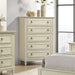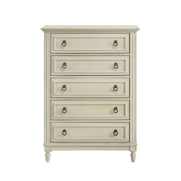 This 5-drawer chest in crisp white embodies a clean and timeless aesthetic. Crafted from durable materials, it features a well-organized layout with five drawers, providing ample storage for clothing and personal items. With its minimalist design and fresh color, this chest adds both functionality and a touch of elegance to bedrooms or living spaces.