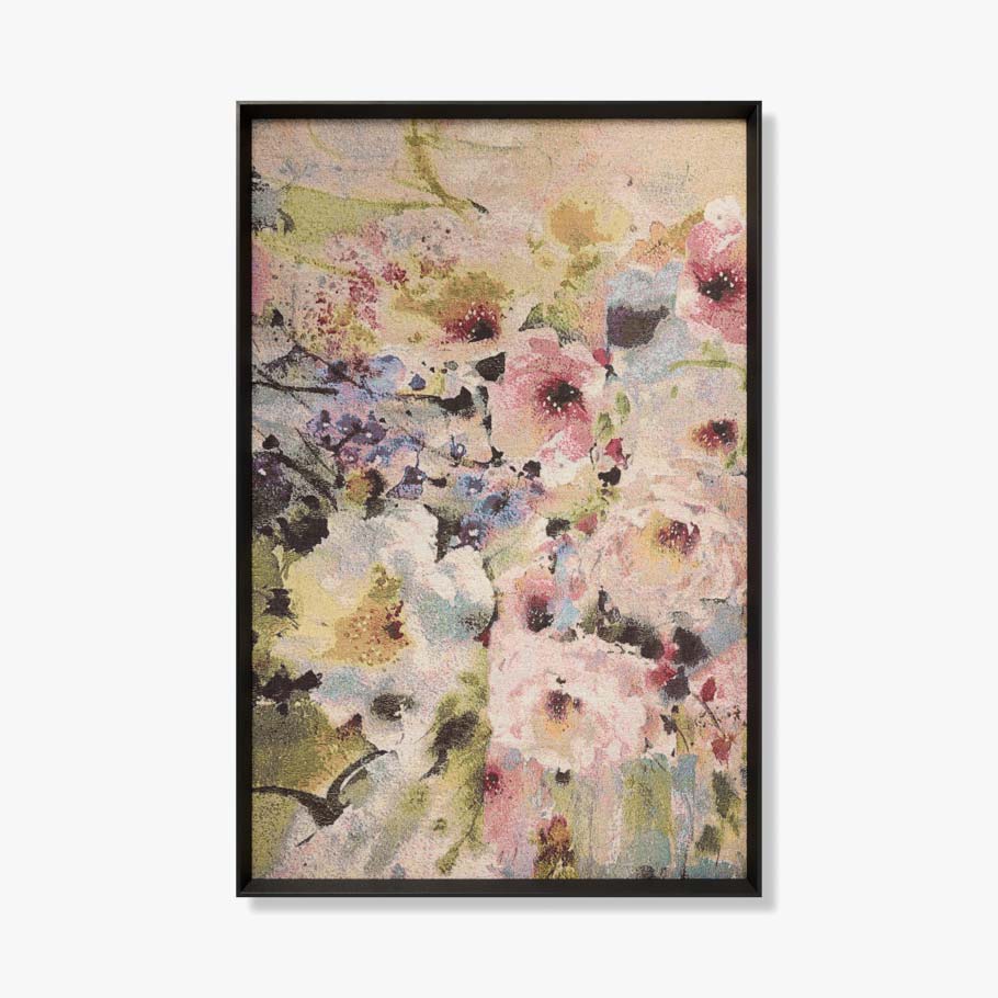 Hana is large wall art with an abstract floral design and the subtle texture of an oil painting, a colorful accent for modern home decor. Hana is made in India from cotton and polyester, and custom-framed by Loloi in the USA, measuring 59" x 39".