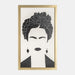 - Frida Kahlo: This contemporary minimalist Frida portrait brings distinctive flair to a favorite space. Inspired by her many self-portraits, this artwork showcases her prominent unibrow, long dangling earrings, and painted lips.