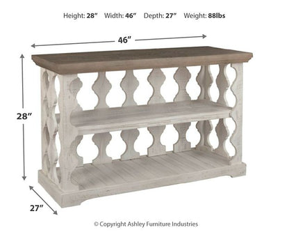 With its richly rustic finish and textural mix, this sofa table goes to town on bygone beauty. Its distressed two-tone treatment blends a weathered gray with vintage white for an utterly charming effect. Balustrade-style planks supporting the top create an eye-catching look that’s anything but ordinary.| Full Dimension | 46W x 17D x 28H |